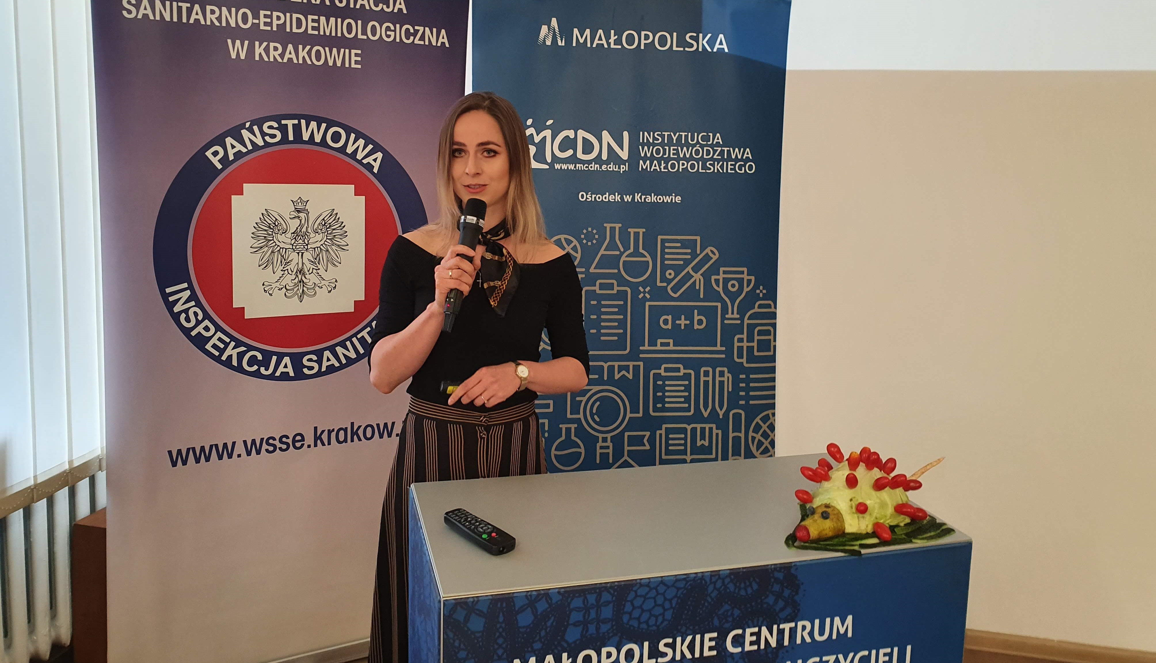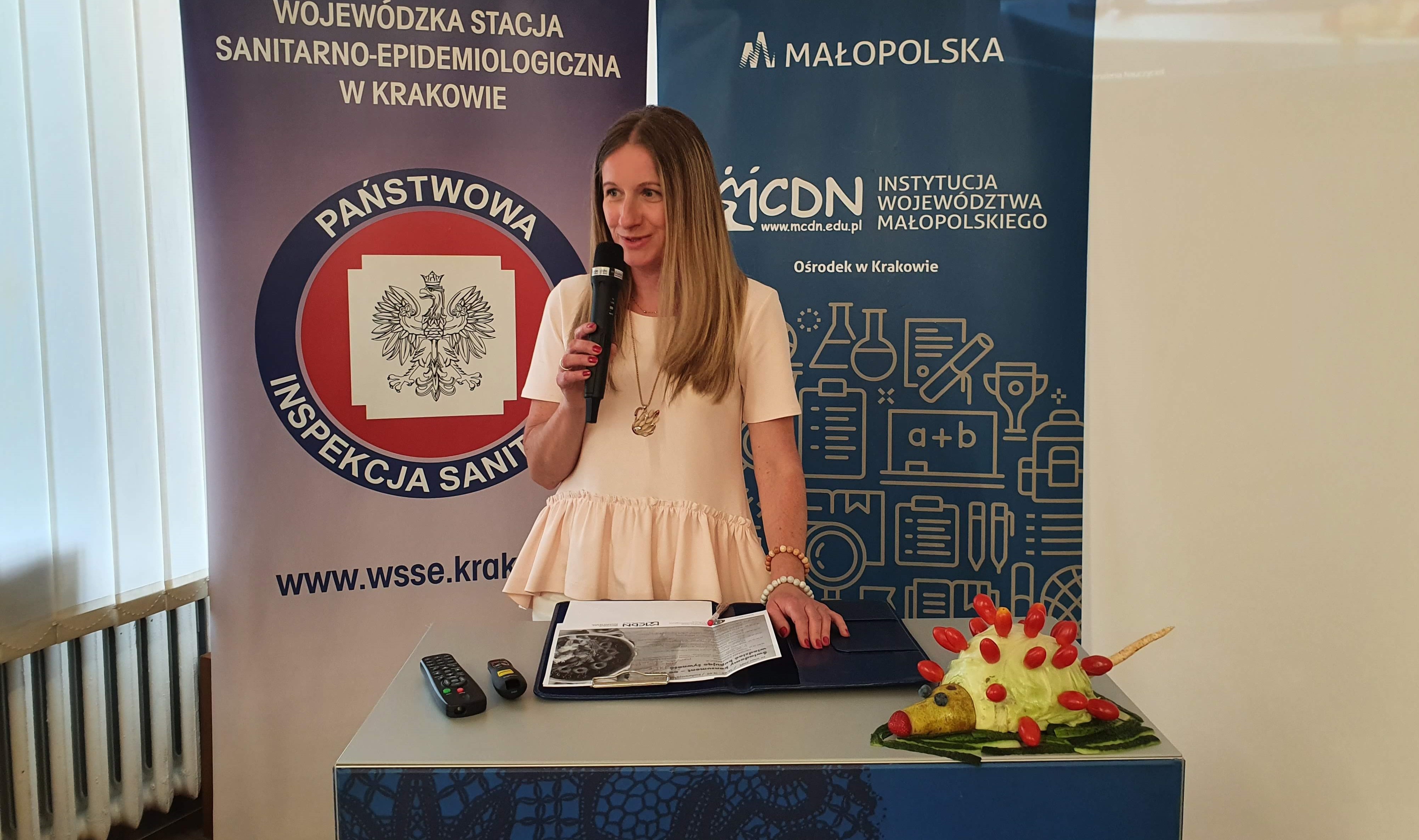 29 maja br., w krakowskim Ośrodku MCDN odbyła się konferencja hybrydowa pn. „Świadomy konsument – co warto wiedzieć kupując żywność” zorganizowana przez Wojewódzką Stację Sanitarno-Epidemiologiczną w Krakowie i Małopolskie Centrum Doskonalenia Nauczycieli. Patronat honorowy nad wydarzeniem objęli: Marszałek Województwa Małopolskiego, Witold Kozłowski oraz Małopolski Kurator Oświaty, Barbara Nowak.