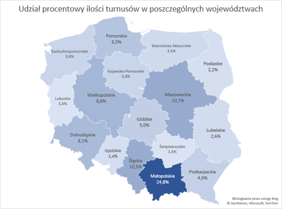 Według informacji uzyskanych z elektronicznej bazy wypoczynku Ministerstwa Edukacji i Nauki (baza MEN), w 2024 r. zgłoszono 8803 turnusy, w których z wypoczynku zimowego skorzystało łącznie 131 300 dzieci. Najwięcej turnusów zorganizowano w województwie małopolskim – 2132 turnusy (24,8% w skali całego kraju), w których wypoczywało łącznie 15 948 dzieci. Najmniej turnusów odnotowano w województwie lubuskim – 131 turnusów (1,5%).