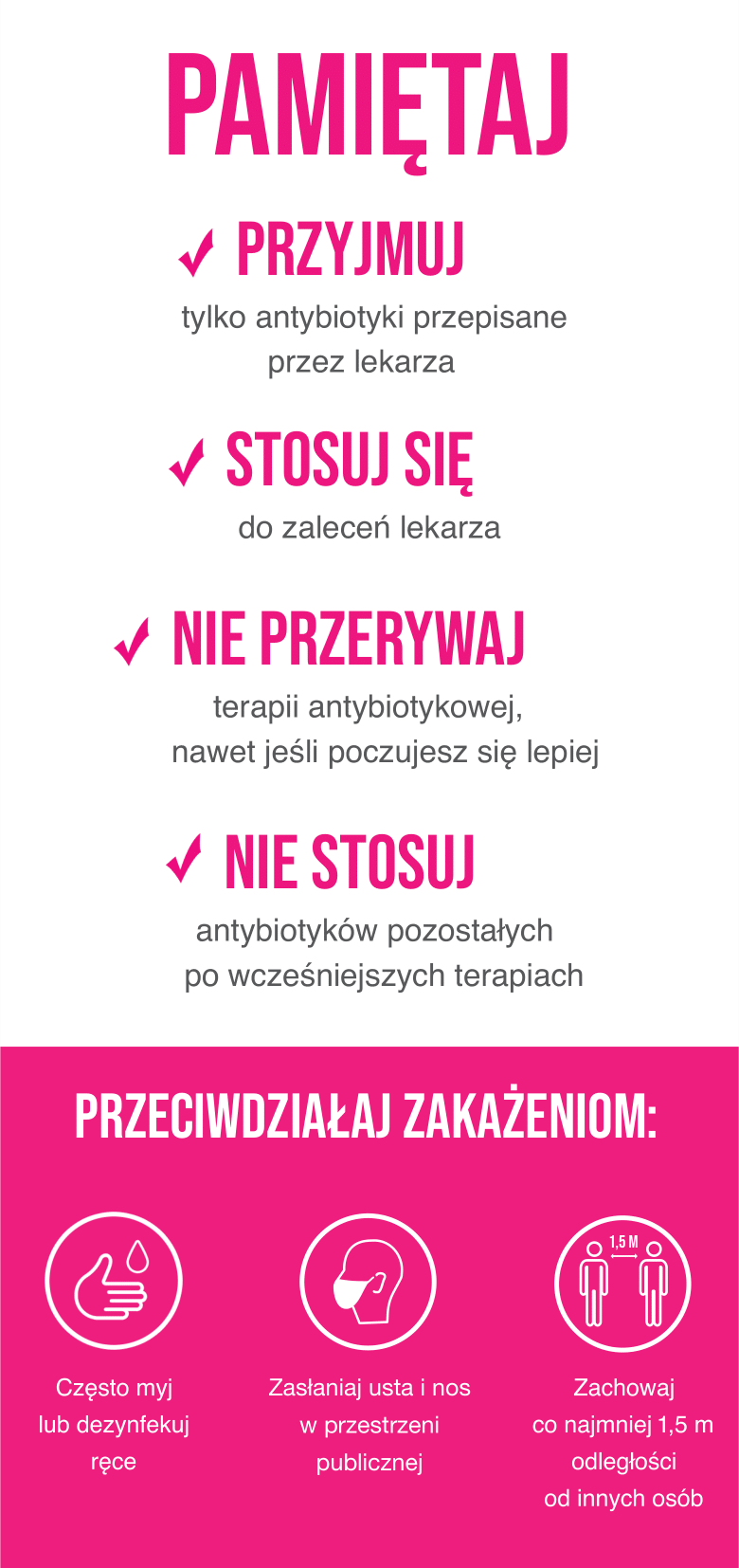- Przyjmuj tylko antybiotyki przepisane przez lekarza