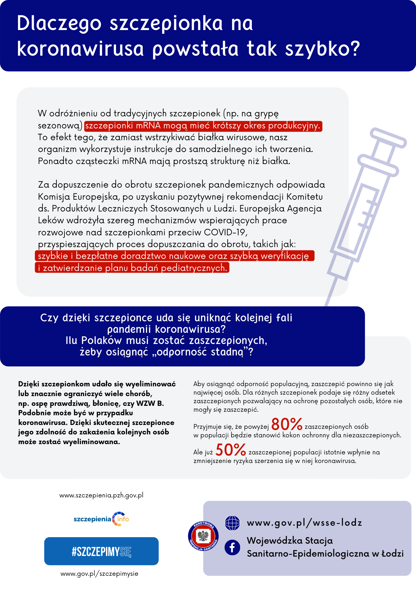 Wojewódzka Stacja Sanitarno-Epidemiologiczna w Łodzi zaprasza również na Facebooka, gdzie na bieżąco udostępnia informacje o szczepieniach przeciw COVID-19, oraz do zapoznania się z ulotką edukacyjną (poniżej, w formacie png i pdf).
