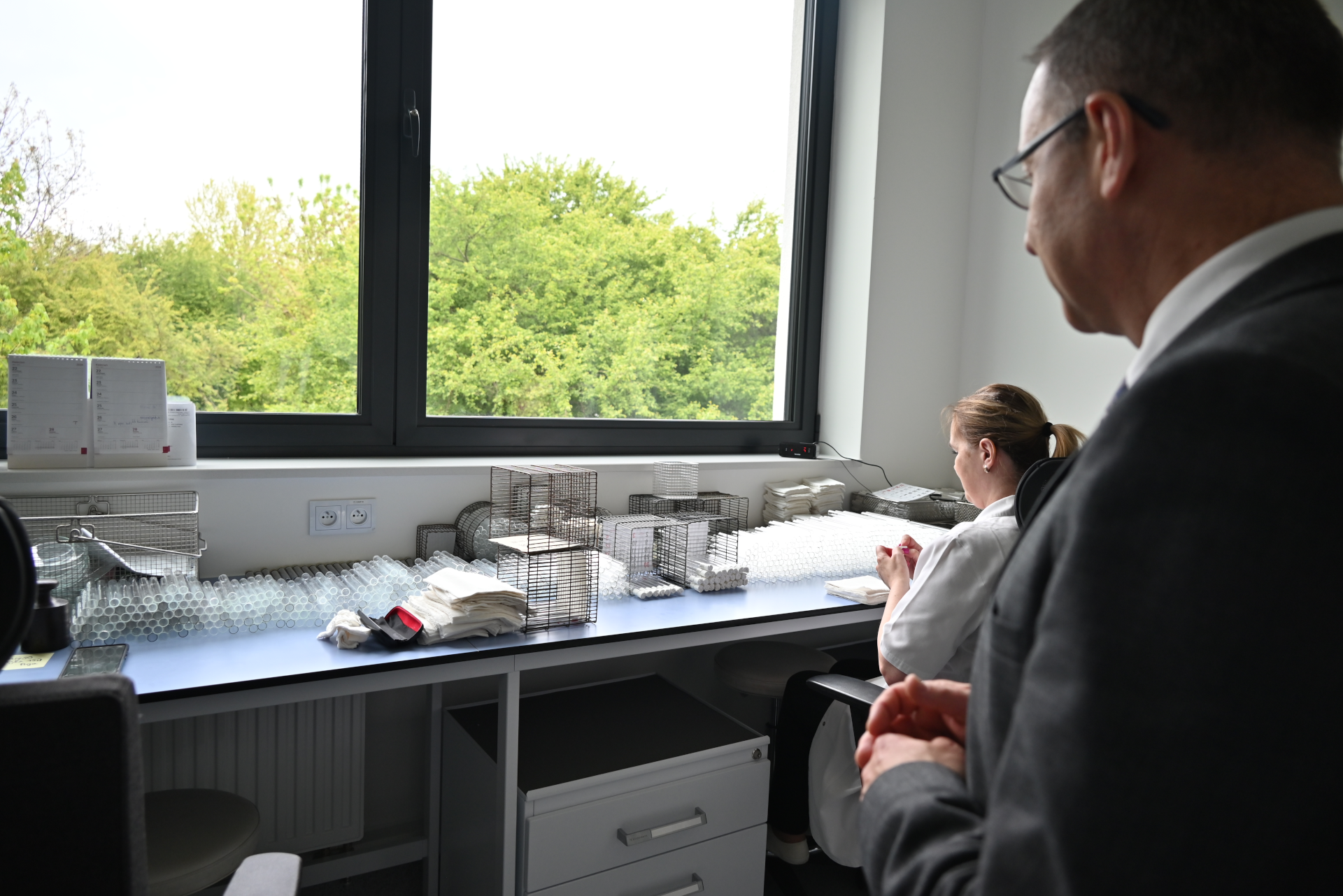 Podczas wizyty wicewojewoda szczegółowo zapoznał się z pracami prowadzonymi w Pracowni Diagnostyki Medycznej. W tej części laboratorium realizowane są zaawansowane badania bakteriologiczne, wirusologiczne i parazytologiczne, w tym diagnostyka obecności Salmonelli, E. coli oraz wirusów SARS-Cov-2, RSV i grypy czy badania w kierunku wykrywania i różnicowania pasożytów atakujących układ pokarmowy. Andrzej Maj zwrócił uwagę na zastosowane nowoczesne metody i sprzęt, które znacznie przyspieszają i podnoszą precyzję wykonywanych badań.