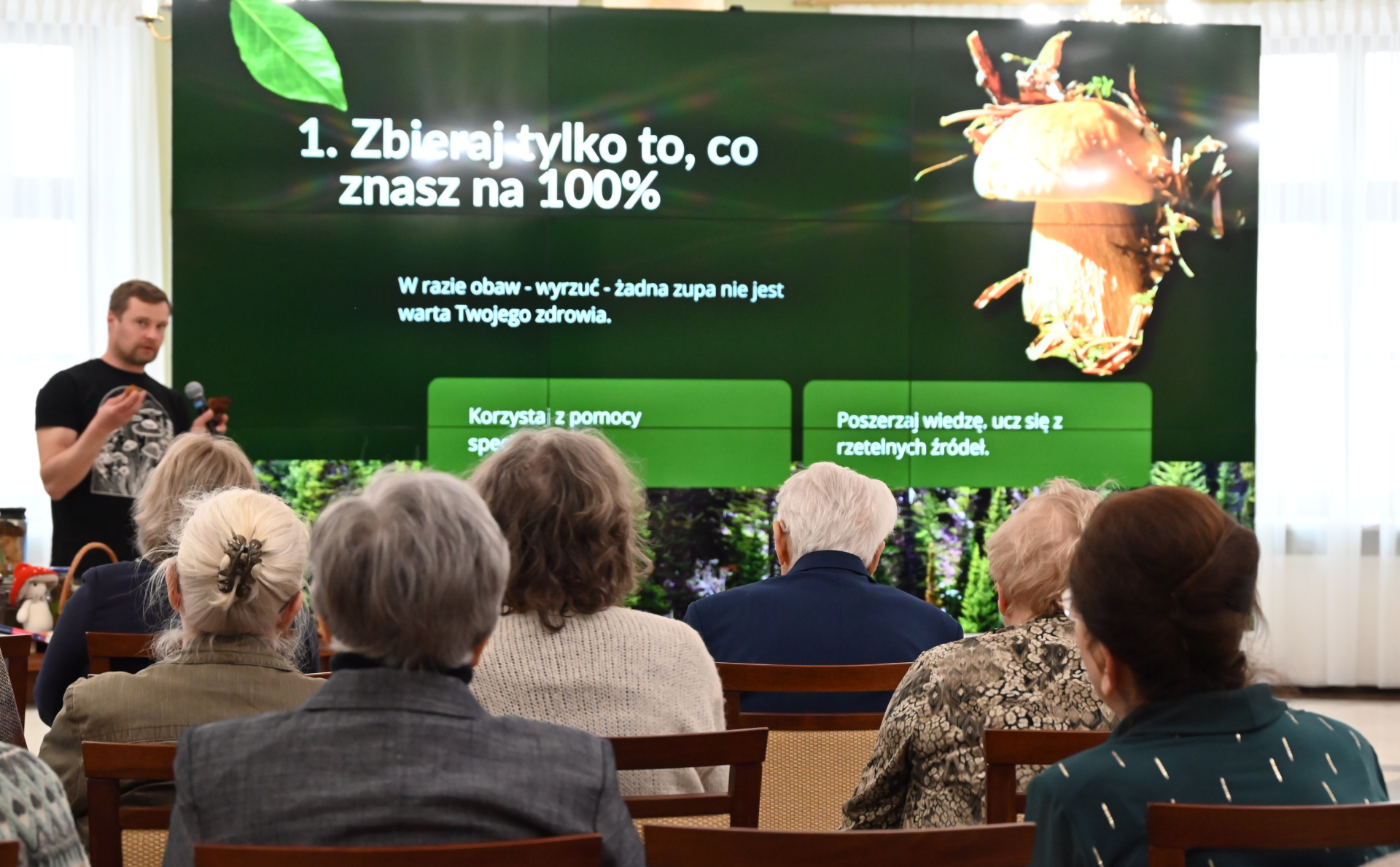 W części edukacyjnej uczestnicy wysłuchali prelekcji poświęconych m.in. zagrożeniom sezonowym oraz profilaktyce zdrowotnej. Szczególnym zainteresowaniem cieszyły się tematy „Kleszcze bez tajemnic – fakty, nie mity” oraz zagadnienia związane z bezpiecznym korzystaniem z darów natury, w tym kulturą grzybobrania.
