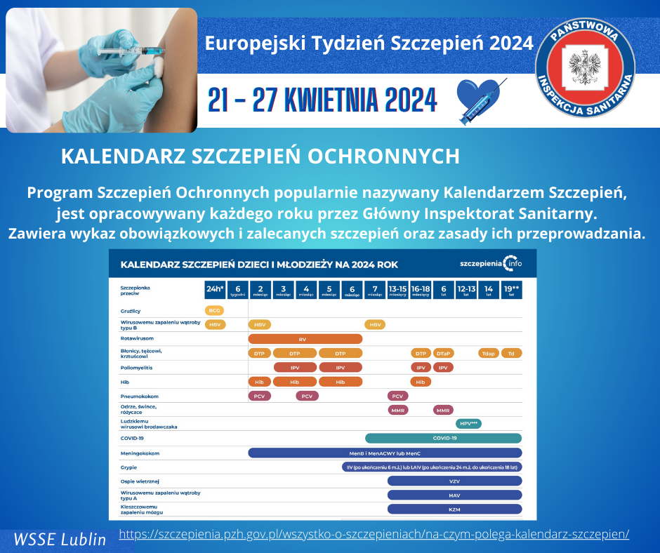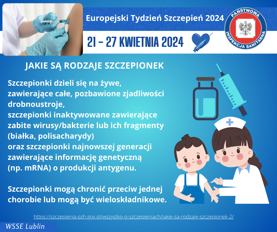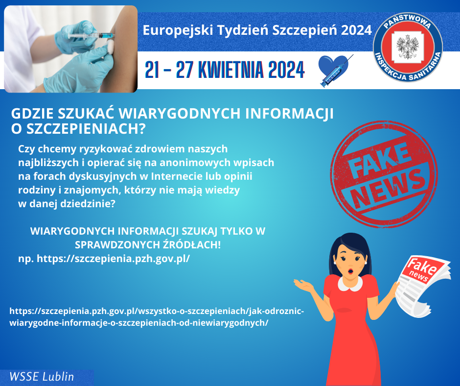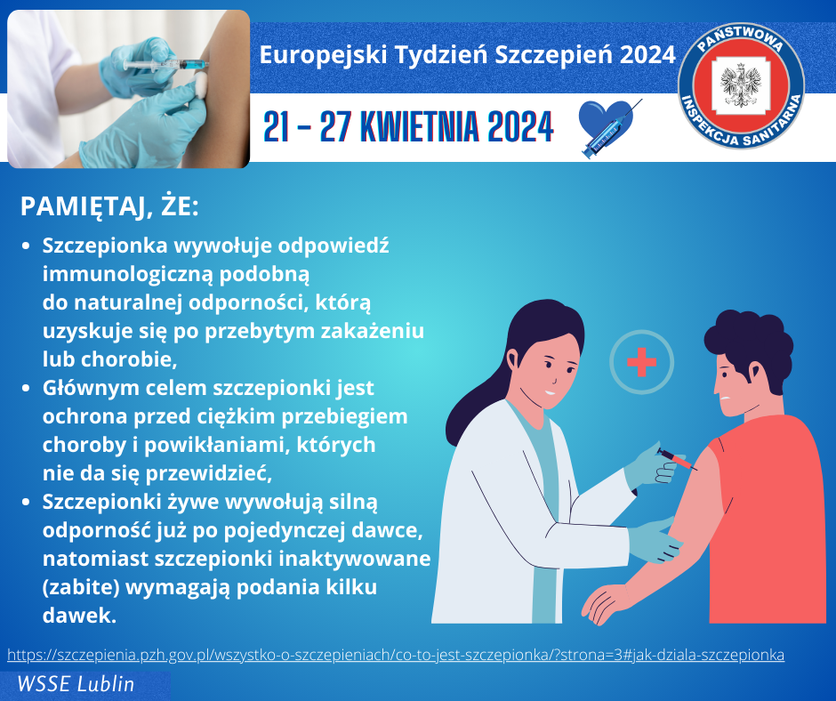 W dniach 24–26 kwietnia, podczas Europejskiego Tygodnia Szczepień, Wojewódzka Stacja Sanitarno-Epidemiologiczna w Lublinie organizuje dyżur telefoniczny, podczas którego eksperci z Oddziału Nadzoru Epidemiologii będą dostępni, aby udzielić informacji i odpowiedzieć na pytania dotyczące szczepień.