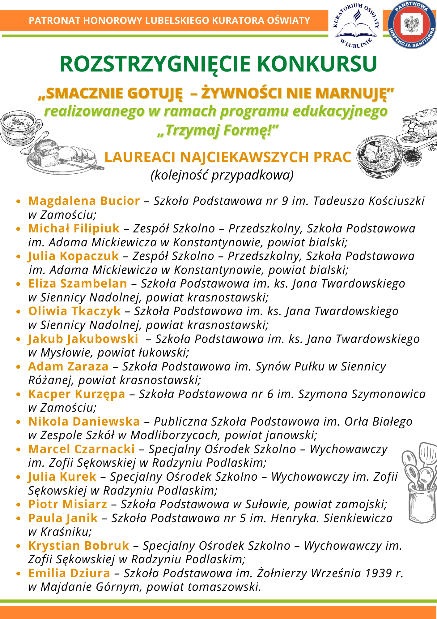 Rozstrzygnięcie wojewódzkiego konkursu „SMACZNIE GOTUJĘ – ŻYWNOŚCI NIE MARNUJĘ”
