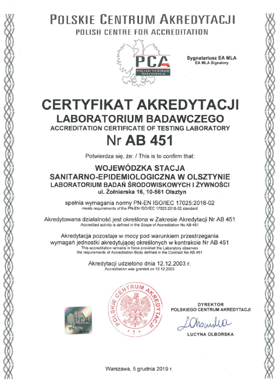 Zakres akredytacji LBŚiŻ Nr AB 451 wydany przez POLSKIE CENTRUM AKREDYTACJI wyd nr 26 z dn 24-11-2025Zakres_akredytacji_LBŚiŻ_Nr_AB_451_wydany_przez_POLSKIE_CENTRUM_AKREDYTACJI_wyd_nr_26_z_dn_24-11-2025.pdf 0.40MB Lista działań prowadzonych w ramach elastycznego zakresu akredytacji Nr 1 OBŻM wydanie nr 2 z dnia 12-12-2025.pdf