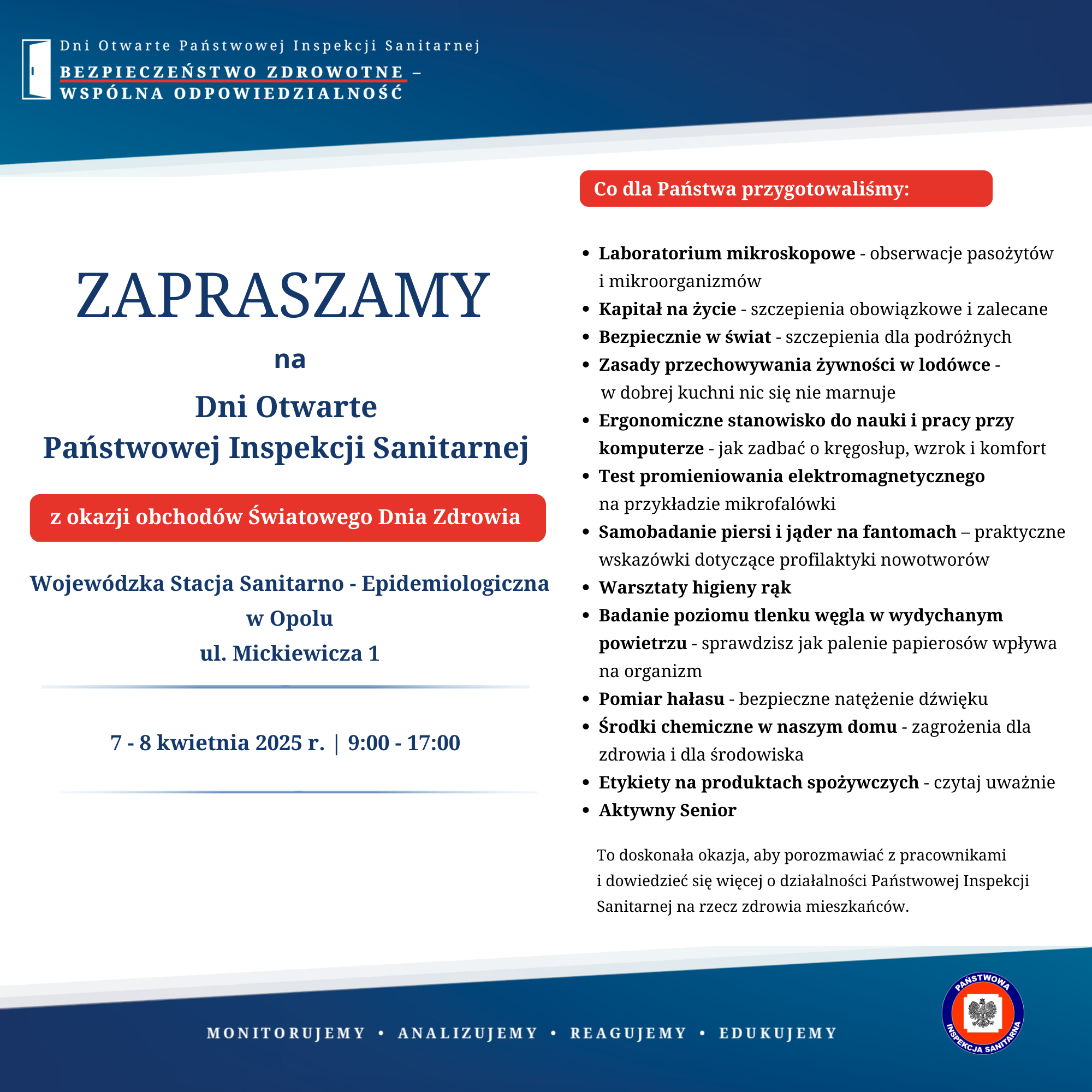 Dni Otwarte Wojewódzkiej Stacji Sanitarno-Epidemiologicznej w Opolu - 7-8 kwietnia 2025 r.