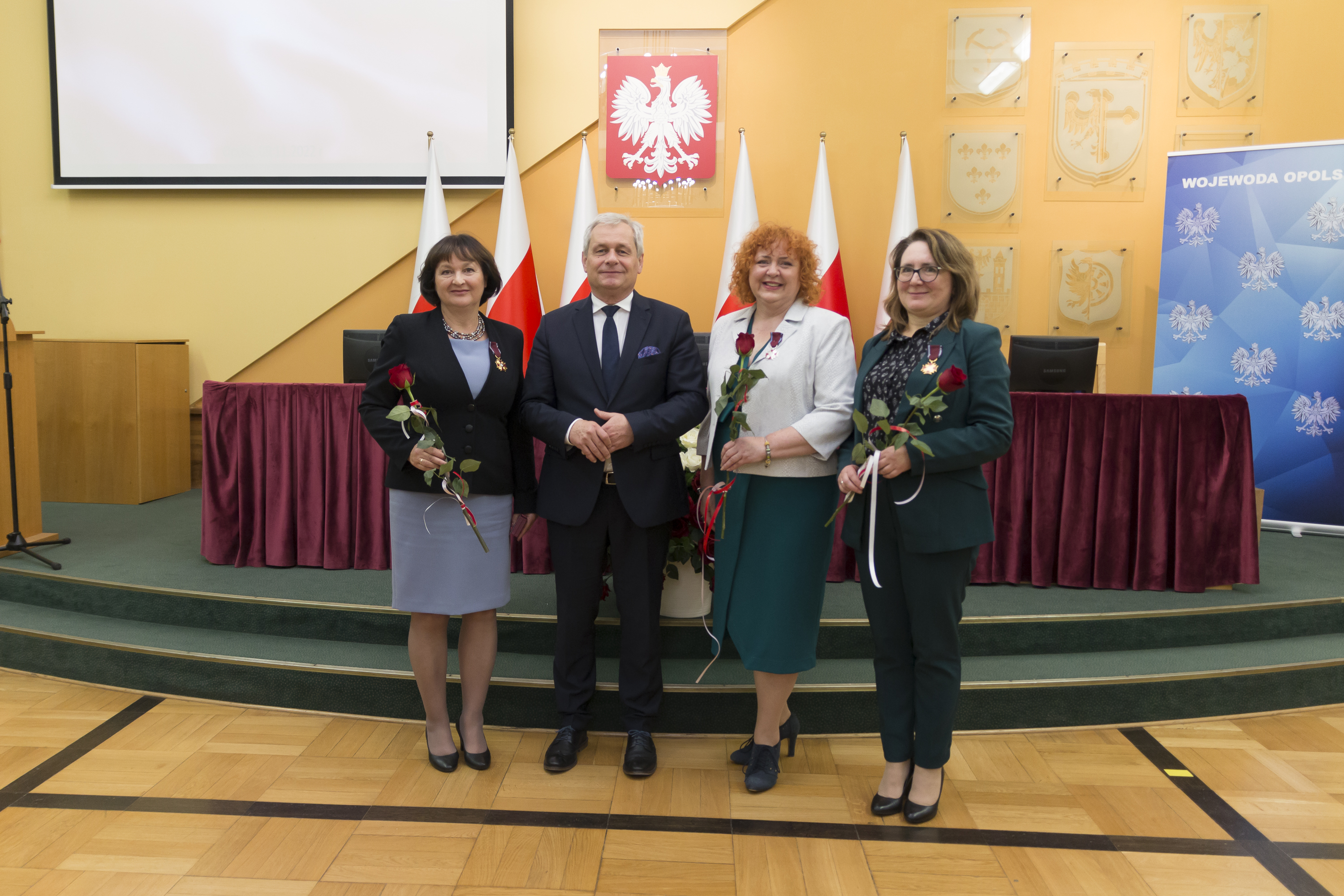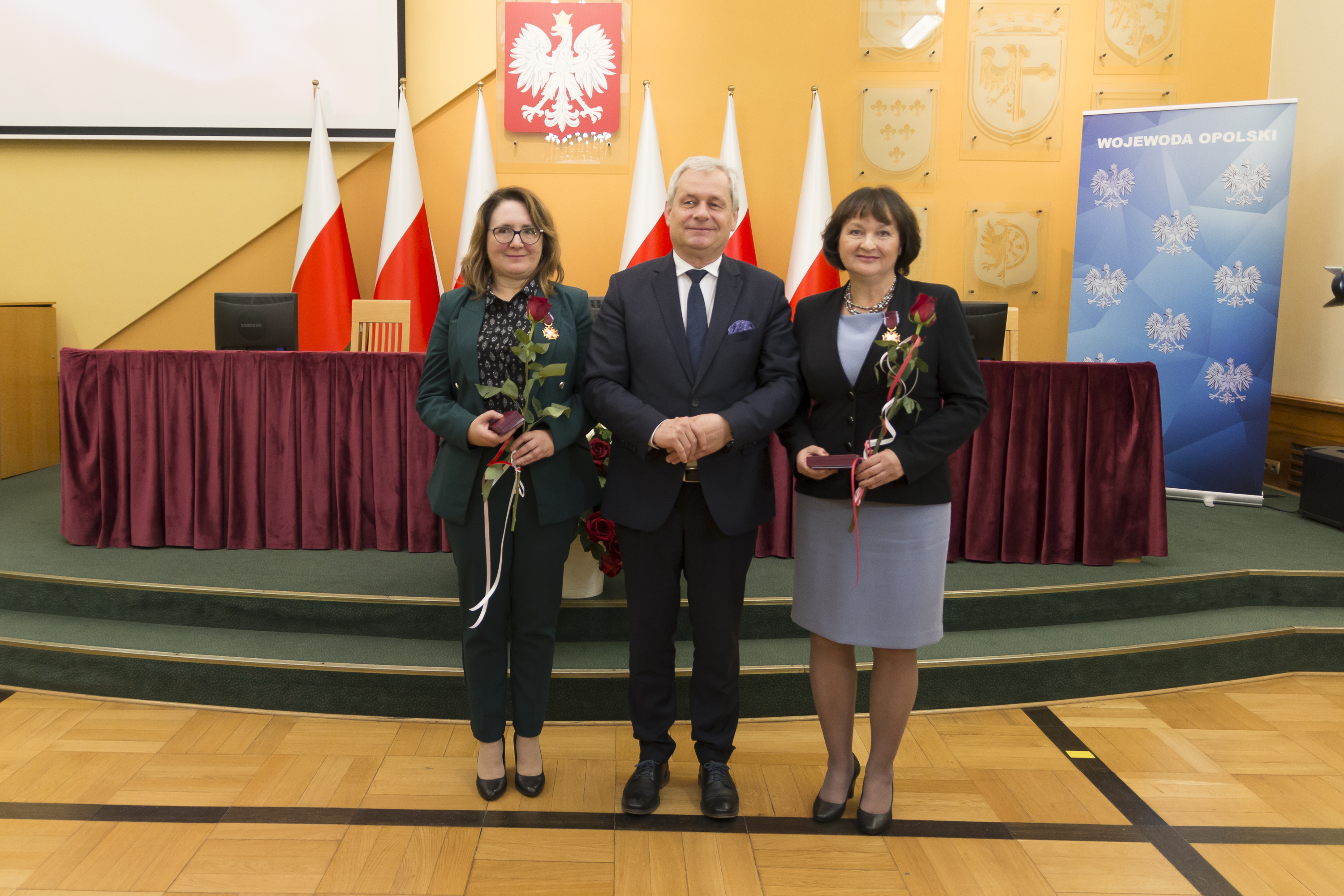 W imieniu Prezydenta RP odznaczenia wręczył Wojewoda Opolski Sławomir Kłosowski. Uroczystość odbyła się w dniu 9 listopada br. w Sali im. Braci Kowalczyków w Opolskim Urzędzie Wojewódzkim.