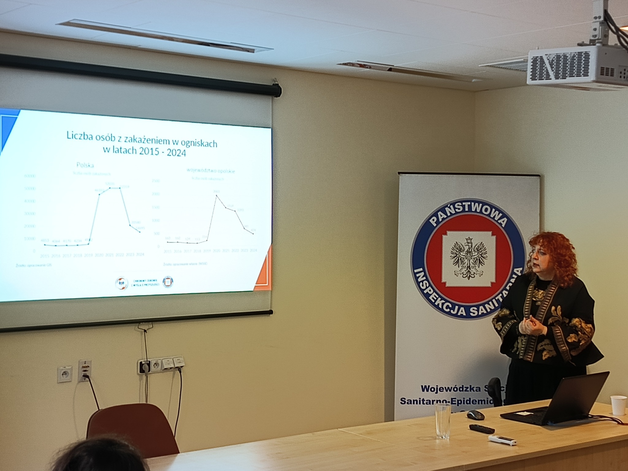 W spotkaniu udział wzięli przedstawiciele Zespołu, pracownicy Oddziałów Epidemiologii Powiatowych Stacji Sanitarno – Epidemiologicznych woj. opolskiego, pielęgniarki epidemiologiczne oraz mikrobiolodzy pracujący w Zespołach Kontroli Zakażeń Szpitalnych. Uczestników szkolenia powitał Opolski Państwowy Wojewódzki Inspektor Sanitarny dr n. med. Anna Matejuk.
