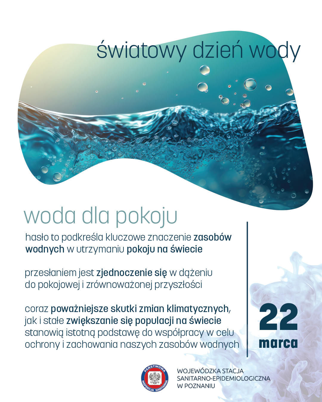 Hasło to podkreśla kluczowe znaczenie zasobów wodnych w utrzymaniu pokoju na świecie.