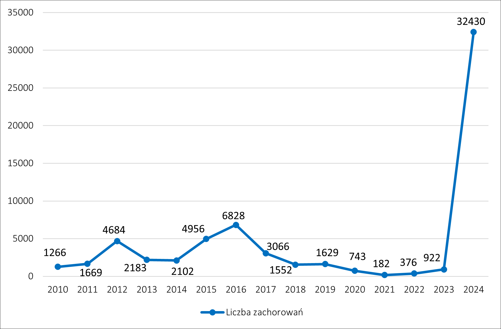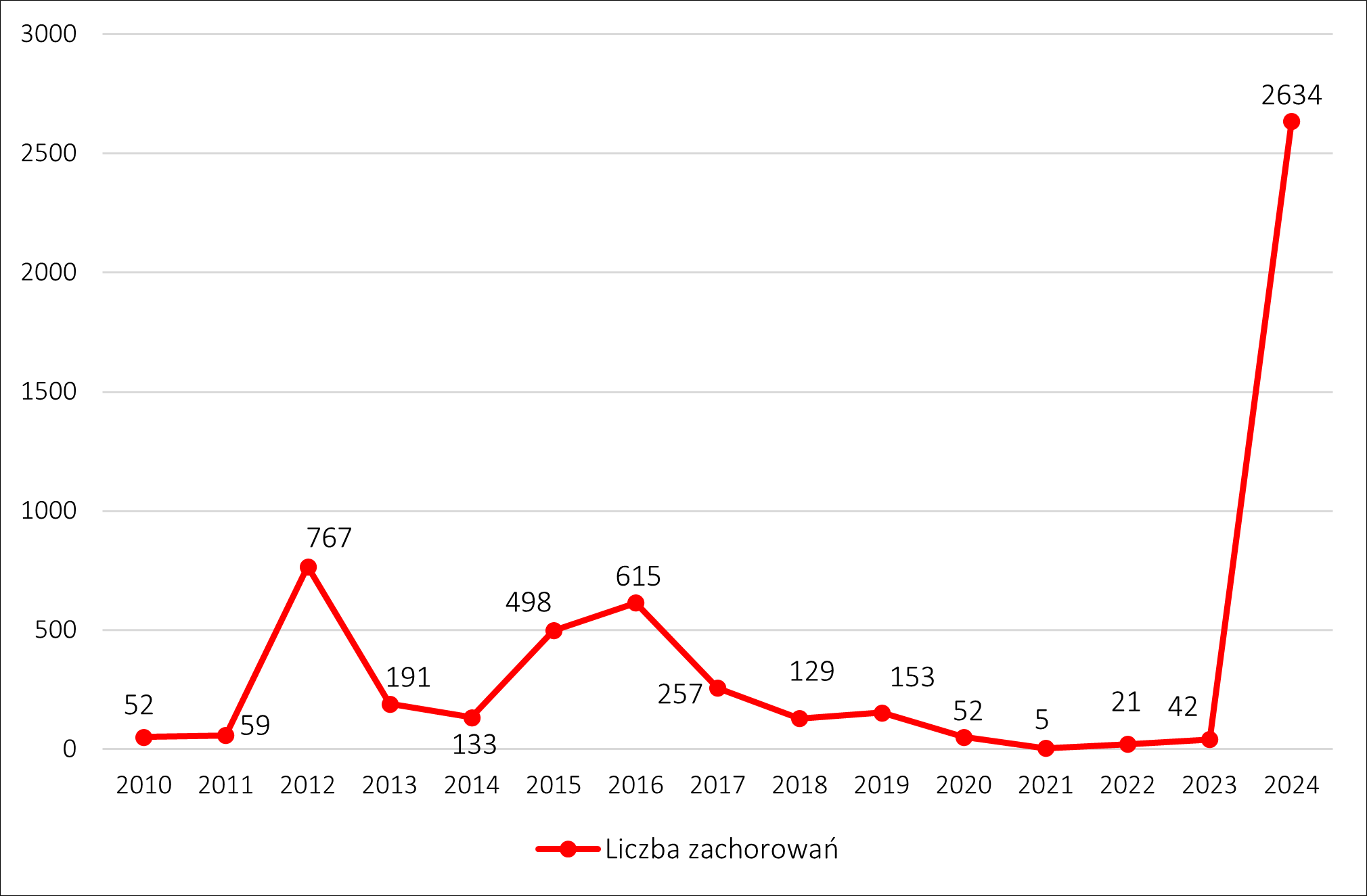 Liczba zachorowań na krztusiec w Polsce w latach 2010-2024