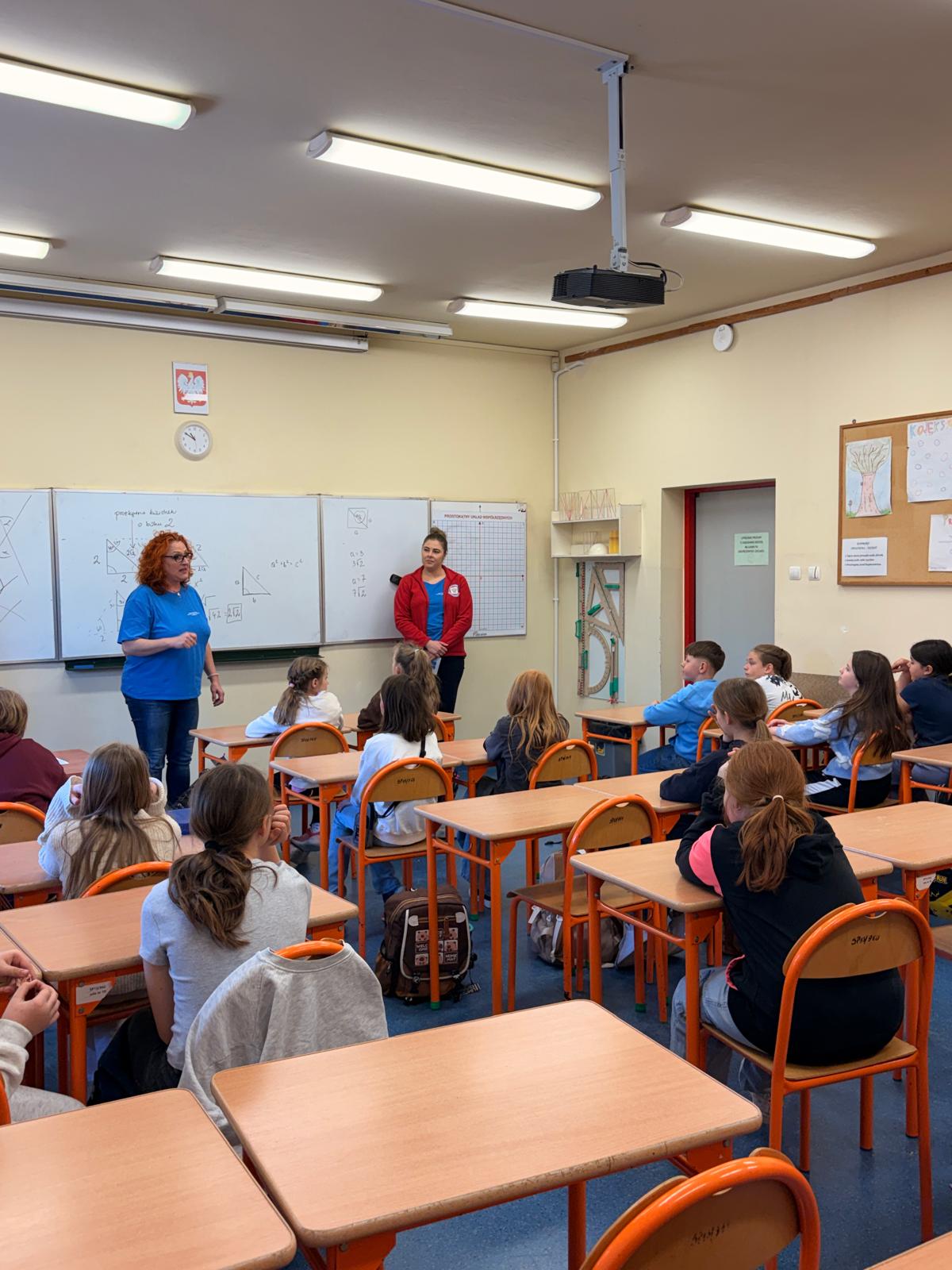Pracownicy Oddziału Higieny Dzieci i Młodzieży przeprowadzili również prelekcje dla uczniów dot. profilaktyki wad postawy oraz instruktażu prawidłowego pakowania tornistra.