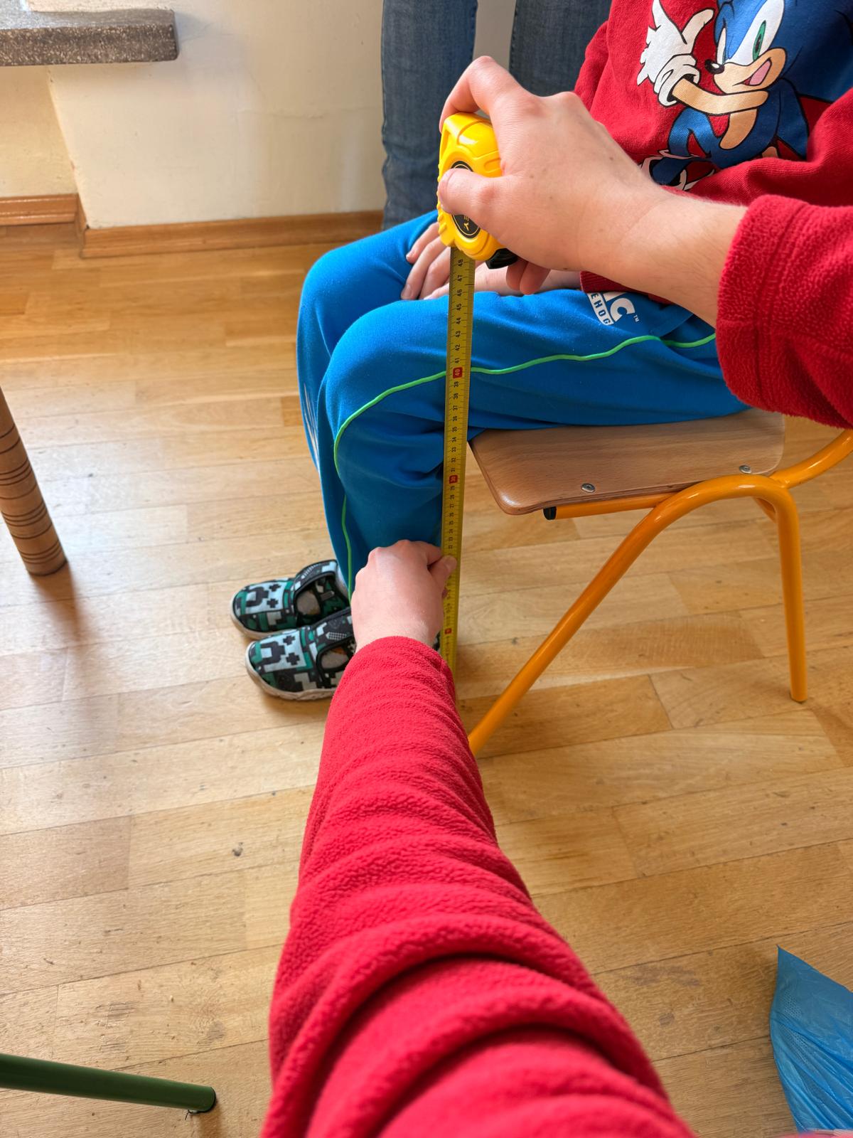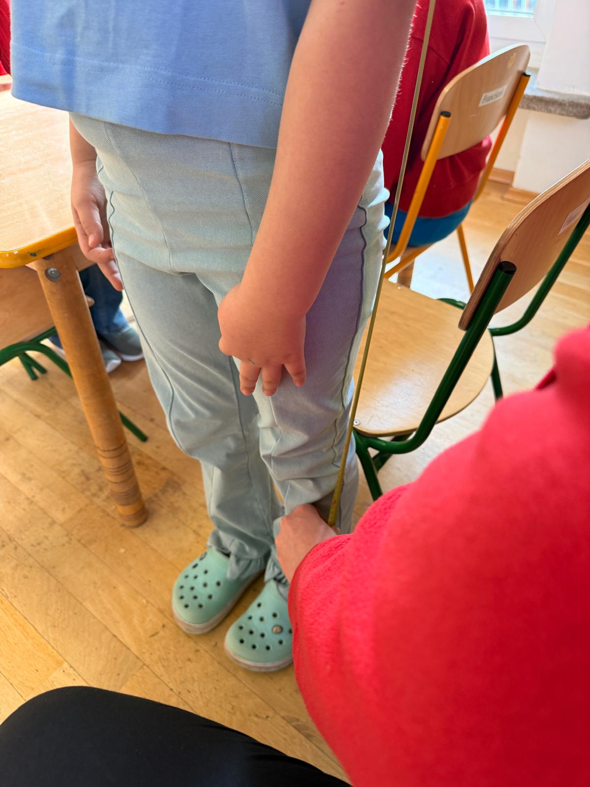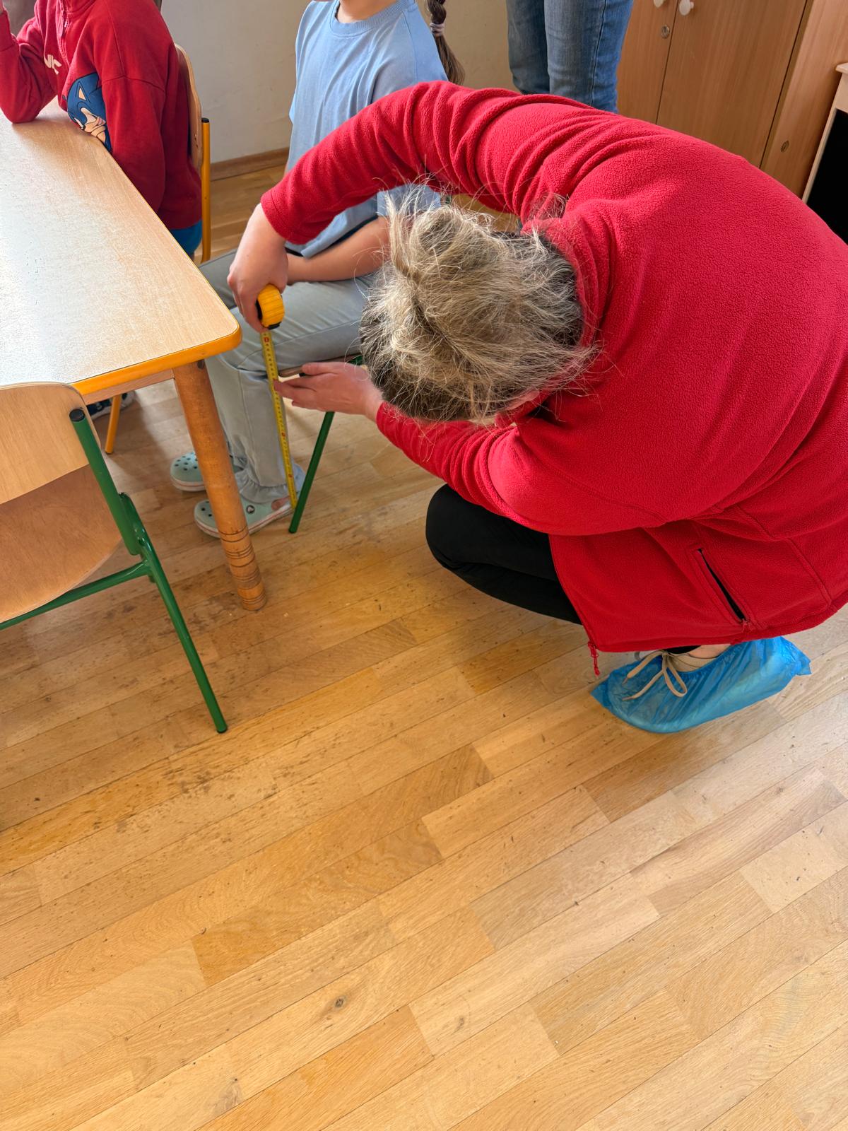 W trakcie oceny ergonomii stanowiska pracy i nauki mierzy się wzrost dziecka, wysokość podkolanową, wysokość płyty roboczej stolika oraz wysokość siedziska krzesła dziecka.