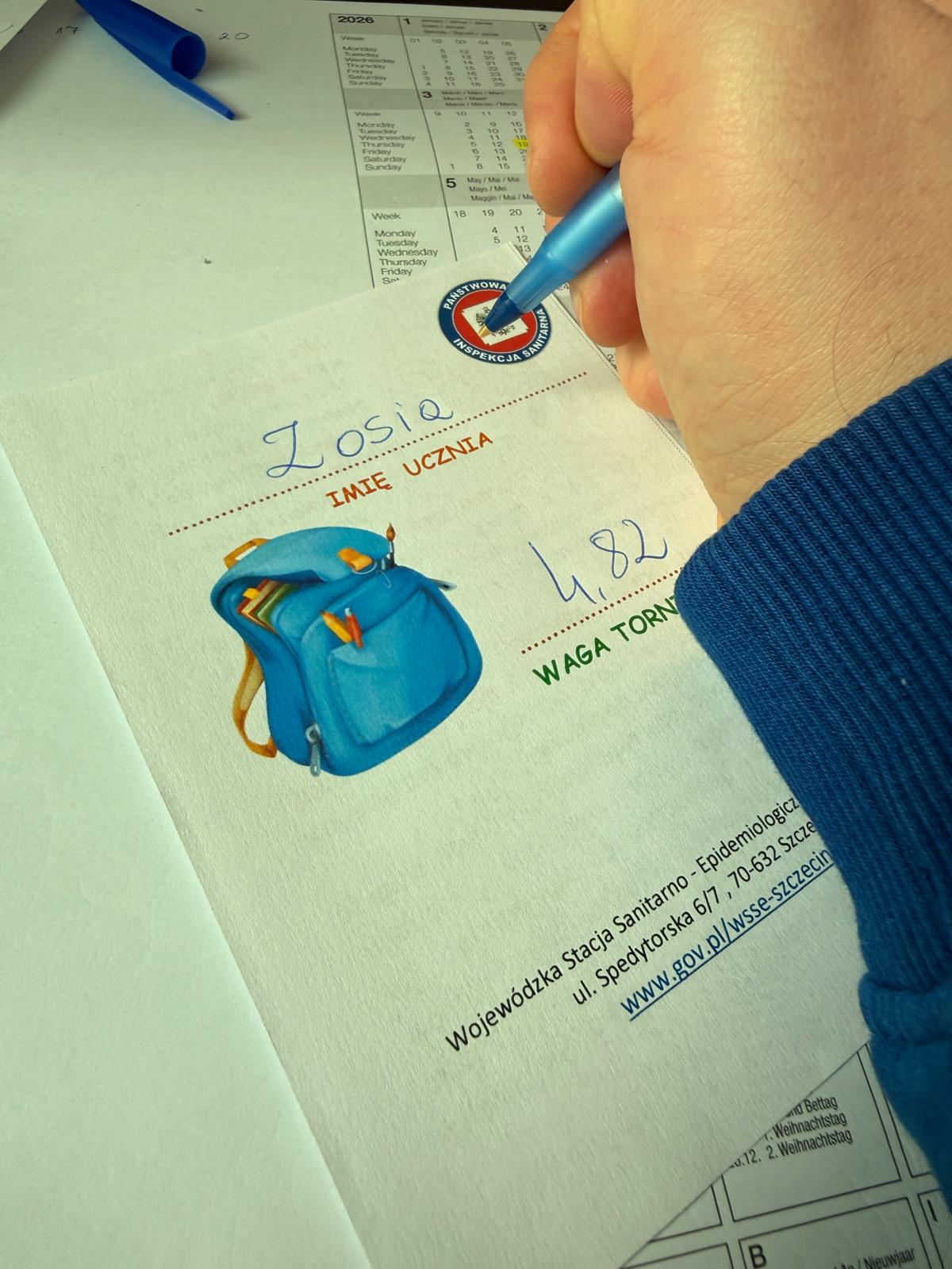 W marcu 2026 roku Wojewódzka Stacja Sanitarno-Epidemiologiczna w Szczecinie przeprowadzała pomiary dostosowania stanowisk pracy przedszkolaków do zasad ergonomii oraz obciążenia tornistrami uczniów szkoły podstawowej w wybranych placówkach oświatowych na terenie miasta Szczecin.