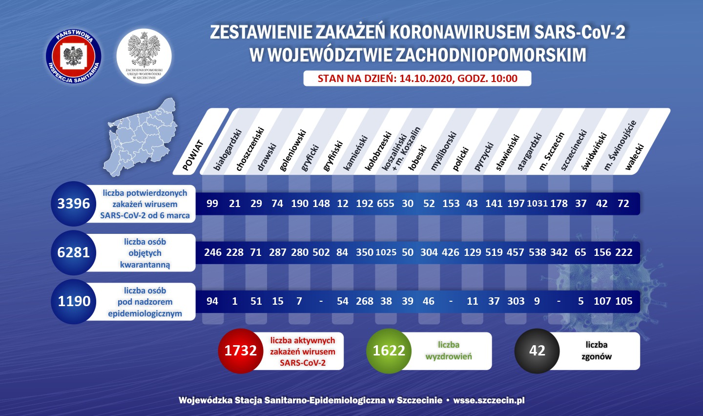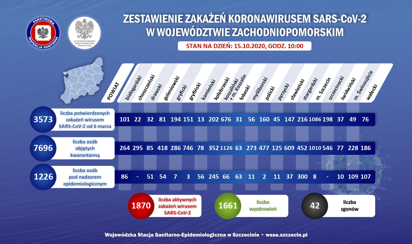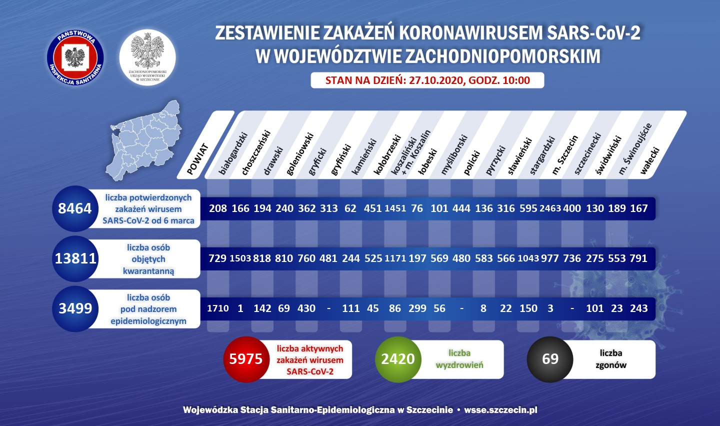 ZESTAWIENIE ZAKAŻEŃ KORONAWIRUSEM SARS-CoV-2 W WOJEWÓDZTWIE ZACHODNIOPOMORSKIM