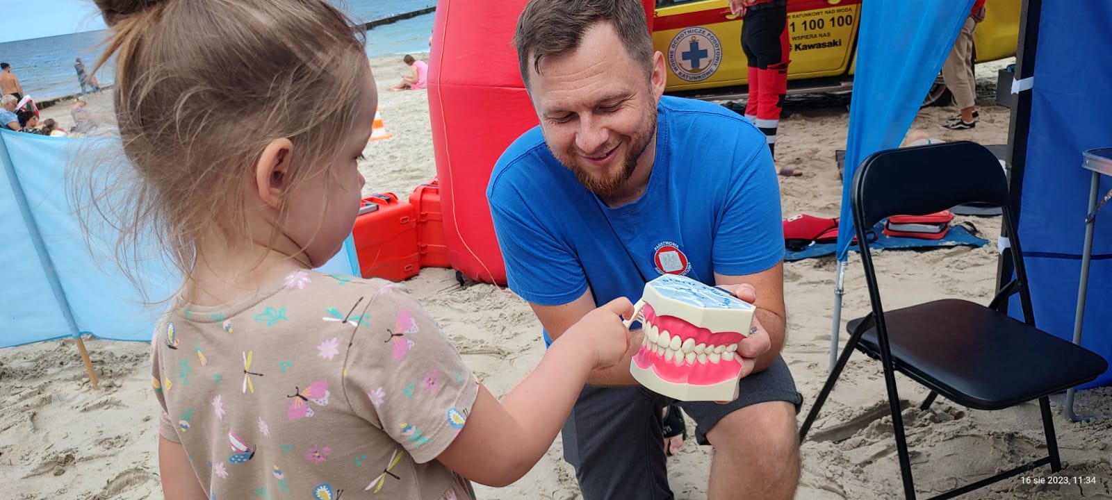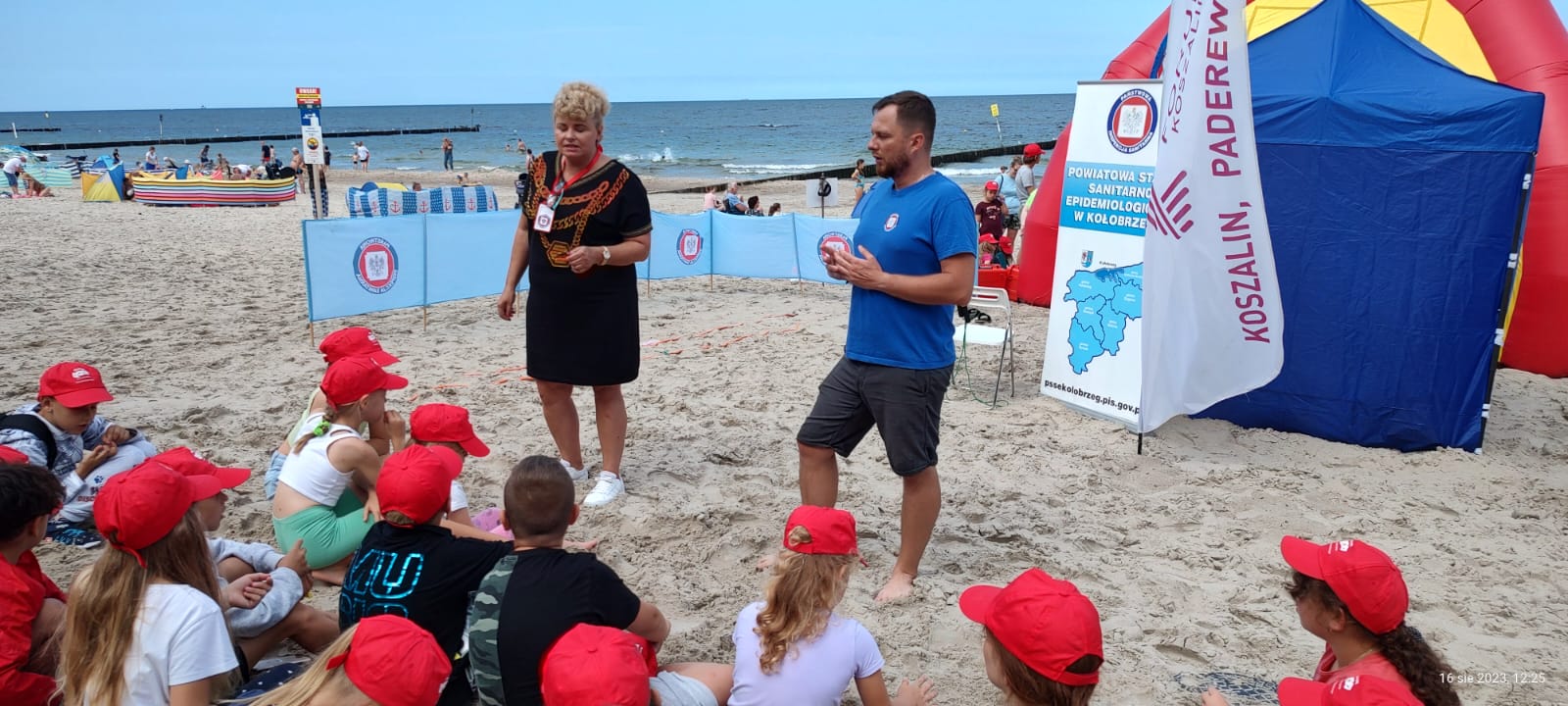 W dniu 16.08.2023 r. pracownicy WSSE w Szczecinie, PSSE w Kołobrzegu oraz WOPR w Kołobrzegu zorganizowali punkt profilaktyczno-edukacyjny dla osób wypoczywających nad Bałtykiem.
