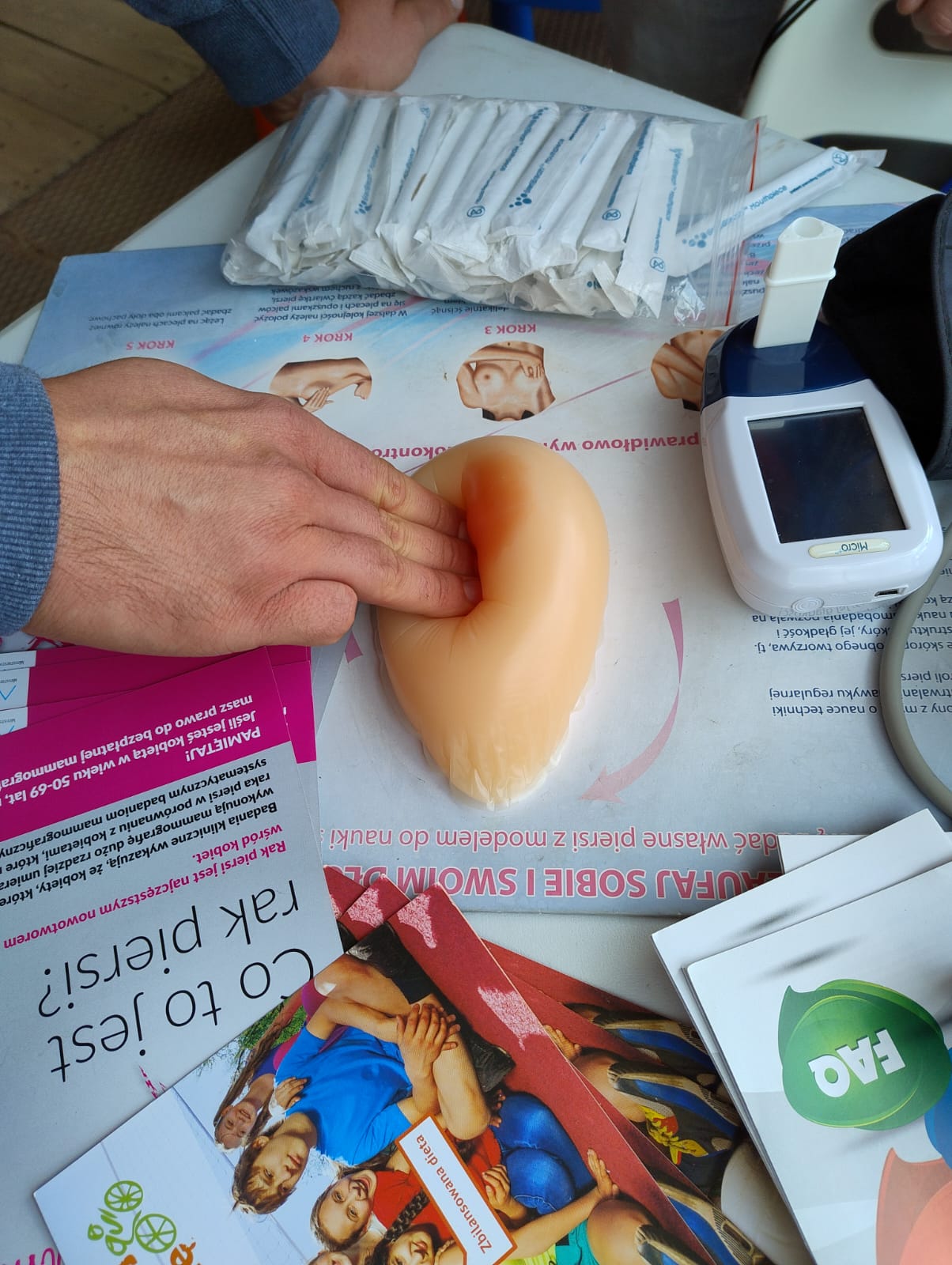W dniach 7-8 października br. Wojewódzka Stacja Sanitarno-Epidemiologiczna w Szczecinie prowadziła działania edukacyjne podczas VII biegu profilaktycznego ,,Pogoń Raka” organizowanego perz Stowarzyszenie Walki z Rakiem Płuca Oddział Szczecin oraz podczas pikniku patriotyczno-zdrowotnego ,,Moja Krew – Moja Ojczyzna”. W związku z obchodzoną w październiku profilaktyką nowotworową, w szczególności raka piersi w ramach stoisk przeprowadzano warsztaty z nauki badania piersi. Warsztaty prowadzone były pod hasłem kolejnej edycji wojewódzkiej kampanii ,,Bądź swoją bohaterką”. Dodatkowo wykonywano również pomiary ciśnienia krwi, analizę składu masy ciała oraz określano poziom tlenku węgla w wydychanym powietrzu u palaczy. Najmłodsi odwiedzający stoiska rozwiązywali zagadki zdrowotne za które otrzymywali upominki. Film z biegu można obejrzeć na profilu Facebook Stowarzyszenia Walki z Rakiem Płuca Oddział Szczecin. Łącznie stoiska odwiedziło 80 osób.