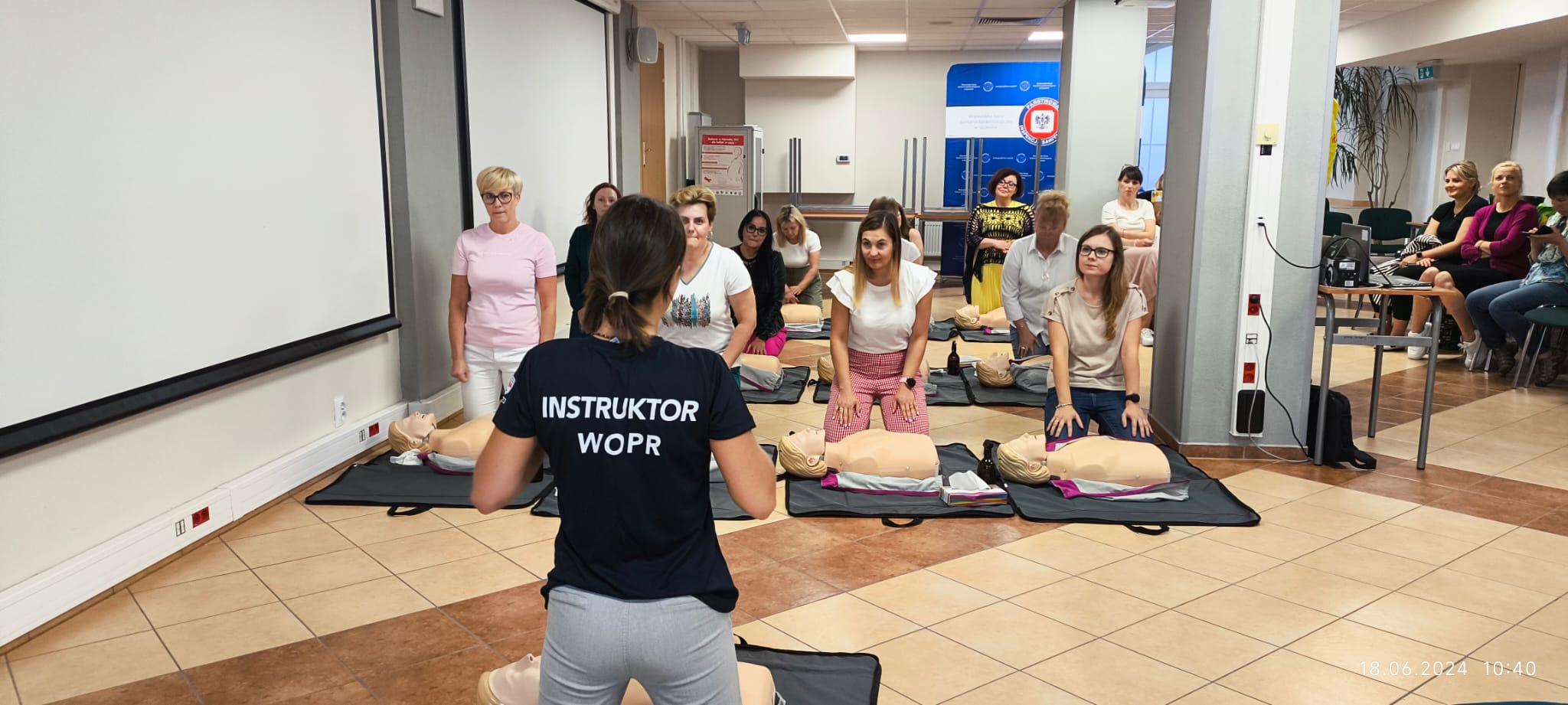 Szkolenie poprowadzone zostało przez instruktorów WOPR i obejmowało zajęcia teoretyczne oraz praktyczne. Uczestnicy szkolenia ćwiczyli udzielanie pierwszej pomocy osobie nieprzytomnej i nieoddychającej, pozycję boczną ustaloną, pomoc w przypadku zakrztuszenia oraz opatrywanie ran. Omówiono również postępowanie w przypadku udaru, zawału serca, wystąpienia reakcji alergicznej oraz hipoglikemii i hiperglikemii.