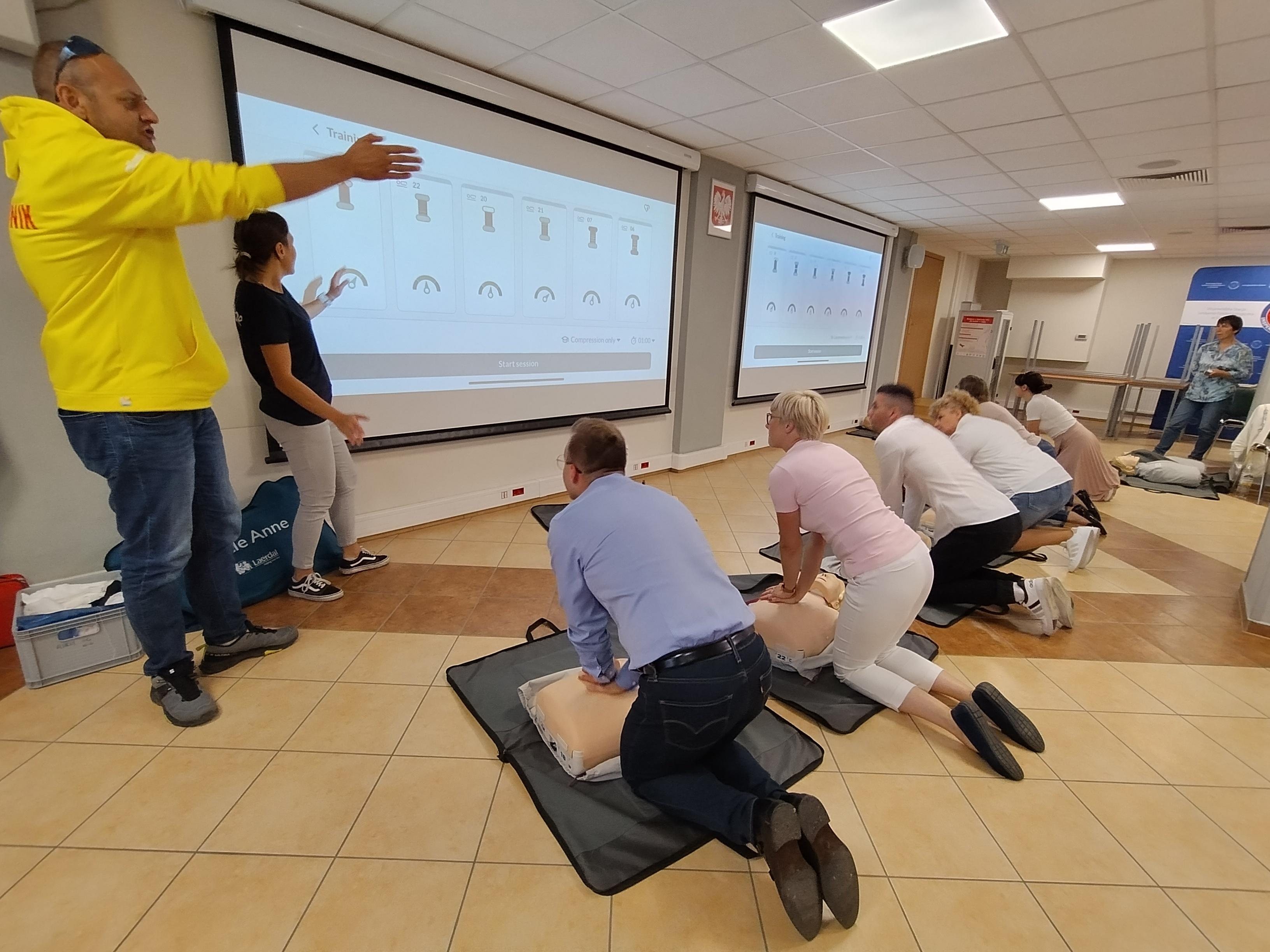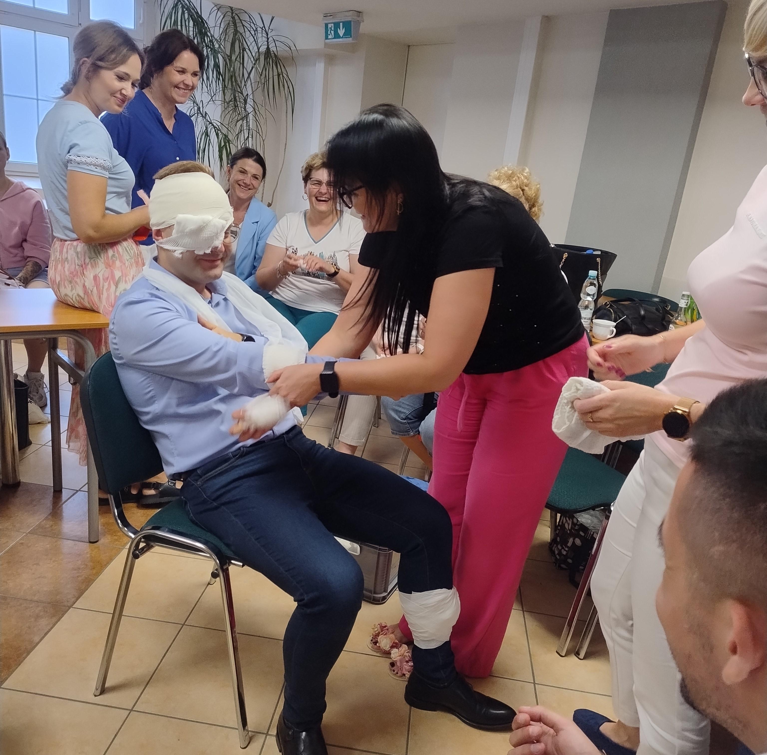 W dniu 18.06.2024 pracownicy oddziału Promocji Zdrowia WSSE w Szczecinie oraz promotorzy zdrowia Powiatowych Stacji Sanitarno-Epidemiologicznych woj. zachodniopomorskiego uczestniczyli w szkoleniu z udzielania pierwszej pomocy przedmedycznej.