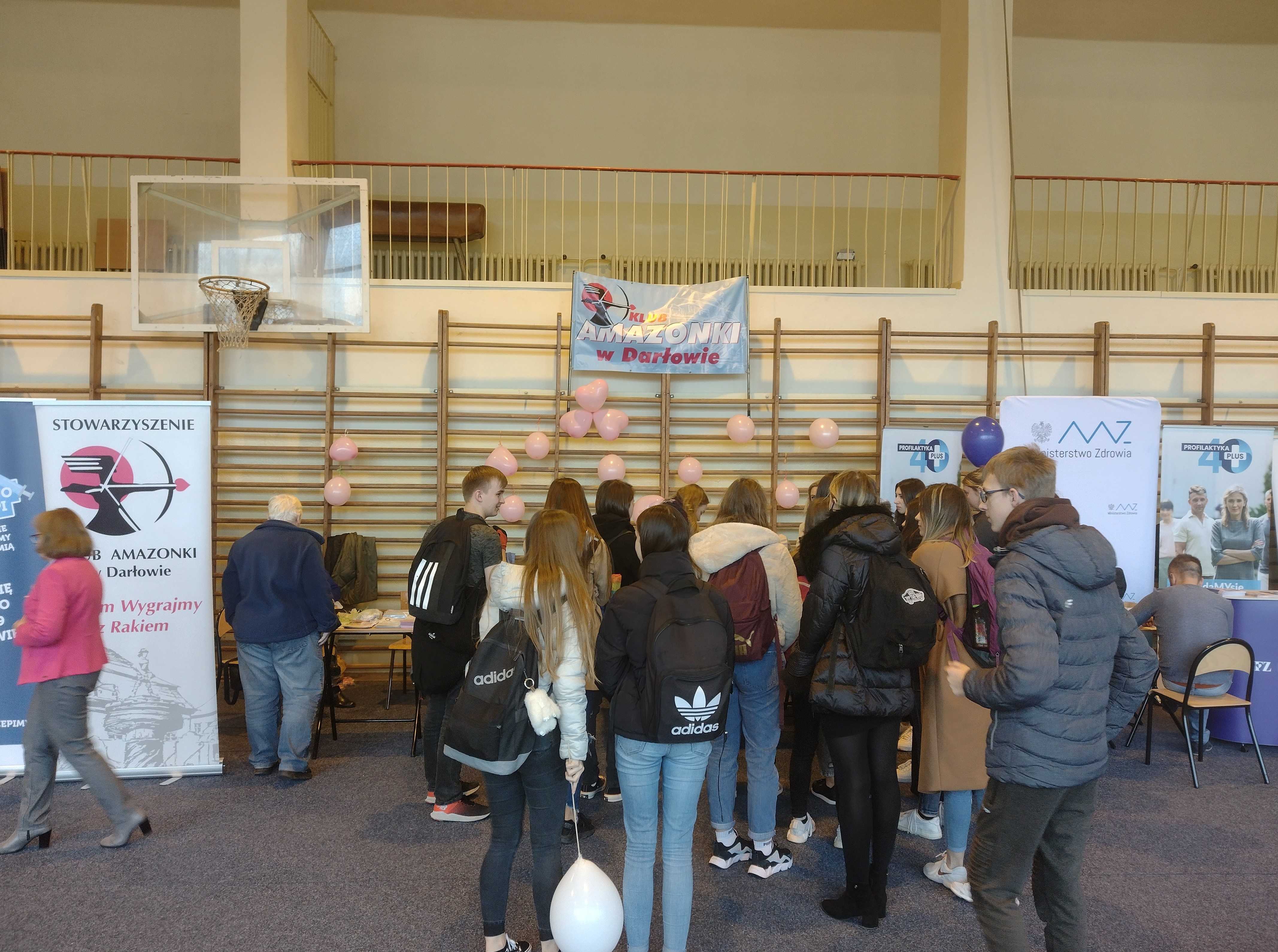 W dniu 21.10.2021 r. w Zespole Szkół Morskich w Darłowie odbyło się wydarzenie prozdrowotne w ramach kampanii profilaktyki raka piersi „Bądź swoją bohaterką!” Wojewódzkiej Stacji Sanitarno-Epidemiologicznej w Szczecinie, zorganizowane wspólnie z Zachodniopomorskim Oddziałem Wojewódzkim NFZ w Szczecinie i Stowarzyszeniem Amazonek w Darłowie. Przy stanowisku Powiatowej Stacji Sanitarno-Epidemiologicznej w Sławnie i Wojewódzkiej Stacji Sanitarno-Epidemiologicznej w Szczecinie możliwe było wykonanie pomiaru wydolności płuc (spirometria) i saturacji, analizy składu masy ciała oraz pomiaru ciśnienia tętniczego krwi. Młodzież mogła skorzystać z symulacji stanu po użyciu substancji psychoaktywnych (narkogogle, alkogogle).