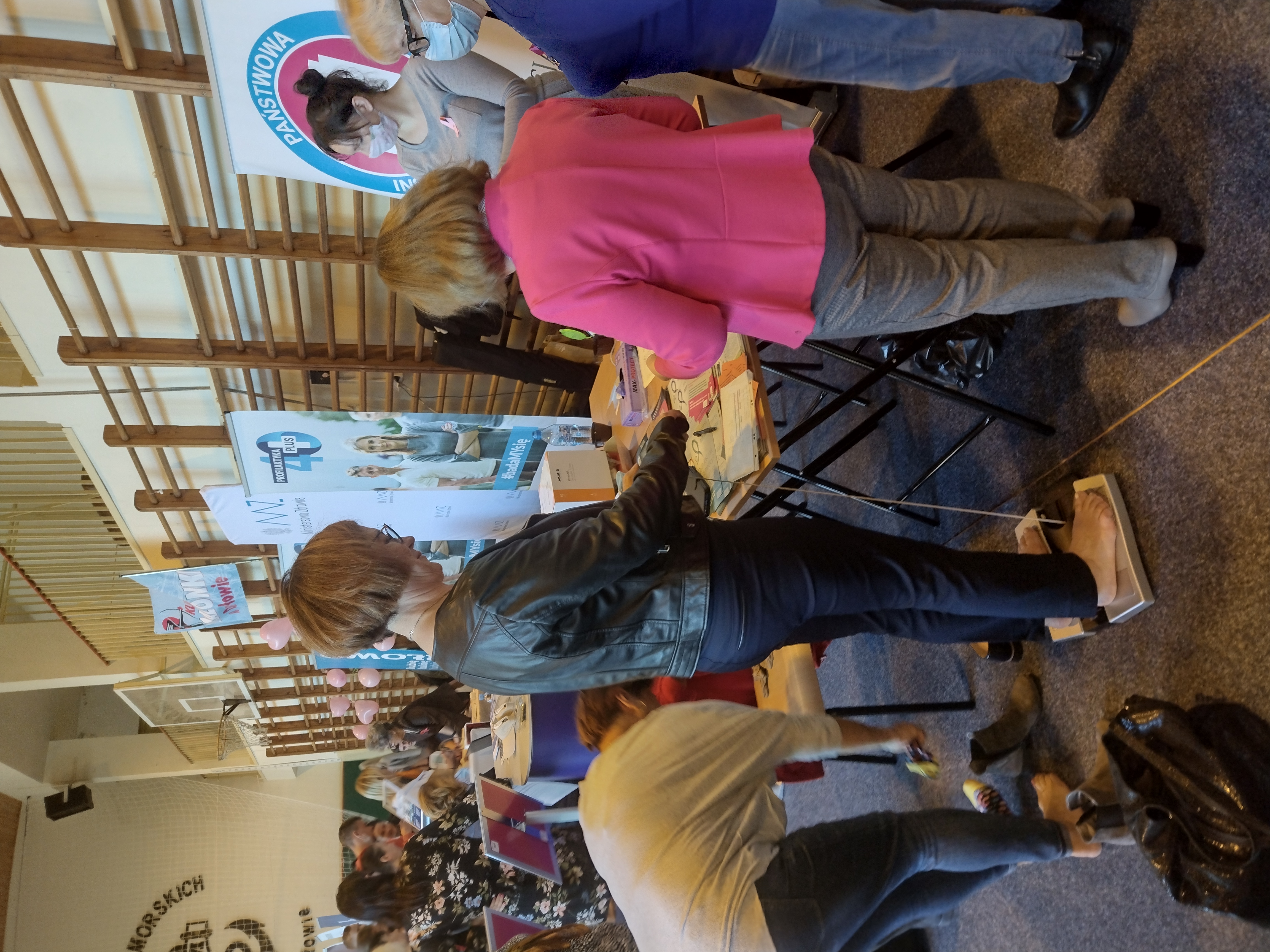 Panie z Klubu Amazonek w Darłowie zachęcały do ćwiczeń kontroli piersi na fantomie z imitacjami zmian nowotworowych.