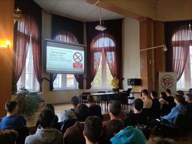 Podczas zajęć edukacyjnych pn. „Nie puszczaj pary z ust!” młodzież poznała schemat uzależnienia od nikotyny, składniki dymu papierosowego oraz ich wpływie na zdrowie palacza i jego otoczenia.