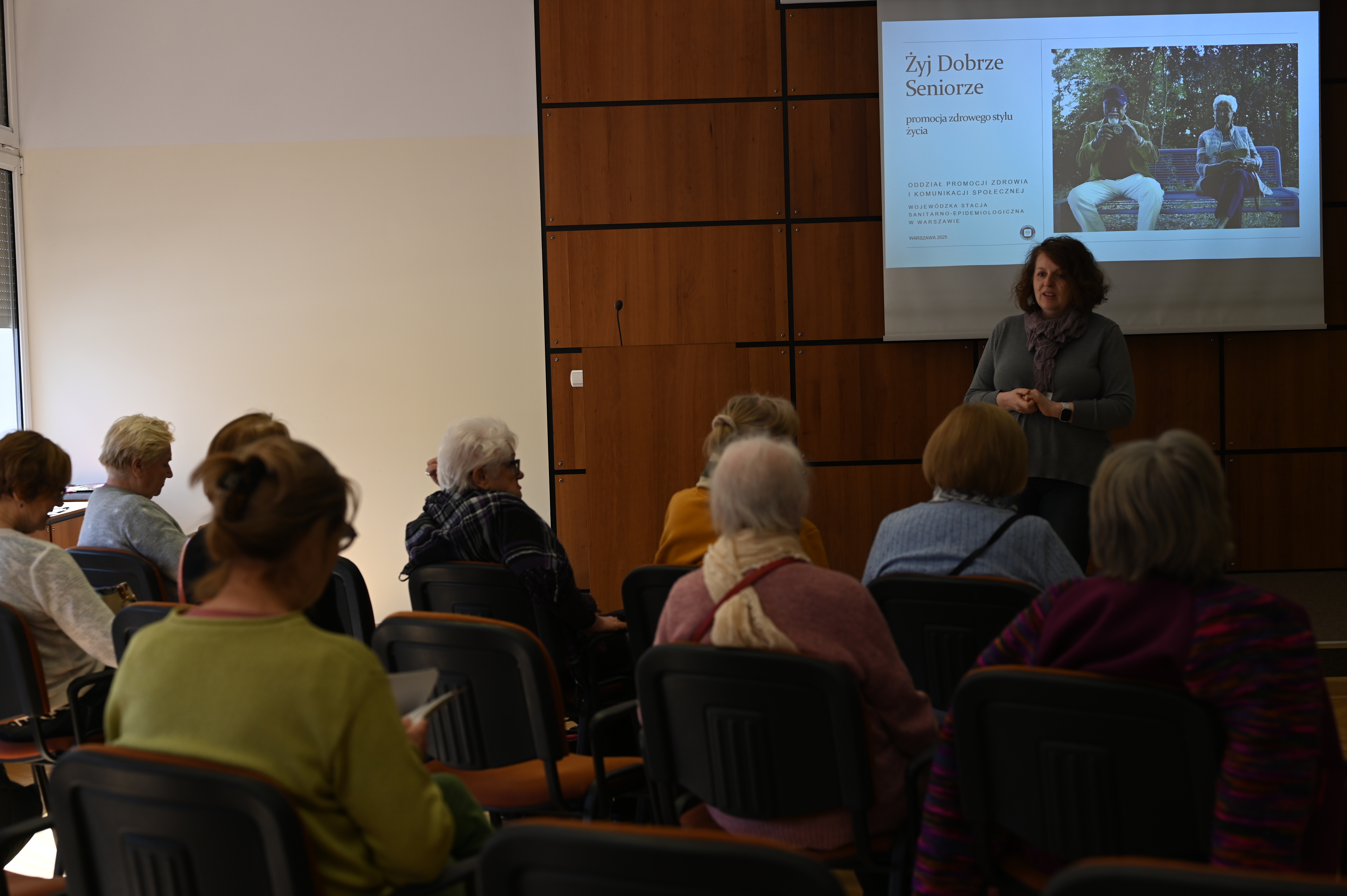Podczas prelekcji pt. „Żyj dobrze, Seniorze” promowano treści dotyczące zdrowego stylu życia oraz wykonywanie badań profilaktycznych. Seniorzy mieli okazję m.in. zapoznać się ze szczepieniami zalecanymi dla ich grupy wiekowej, dowiedzieć się, jak prawidłowo przechowywać i przygotowywać produkty spożywcze oraz jak zachować zdrowie w dobrej kondycji dzięki zmianie codziennych nawyków.
