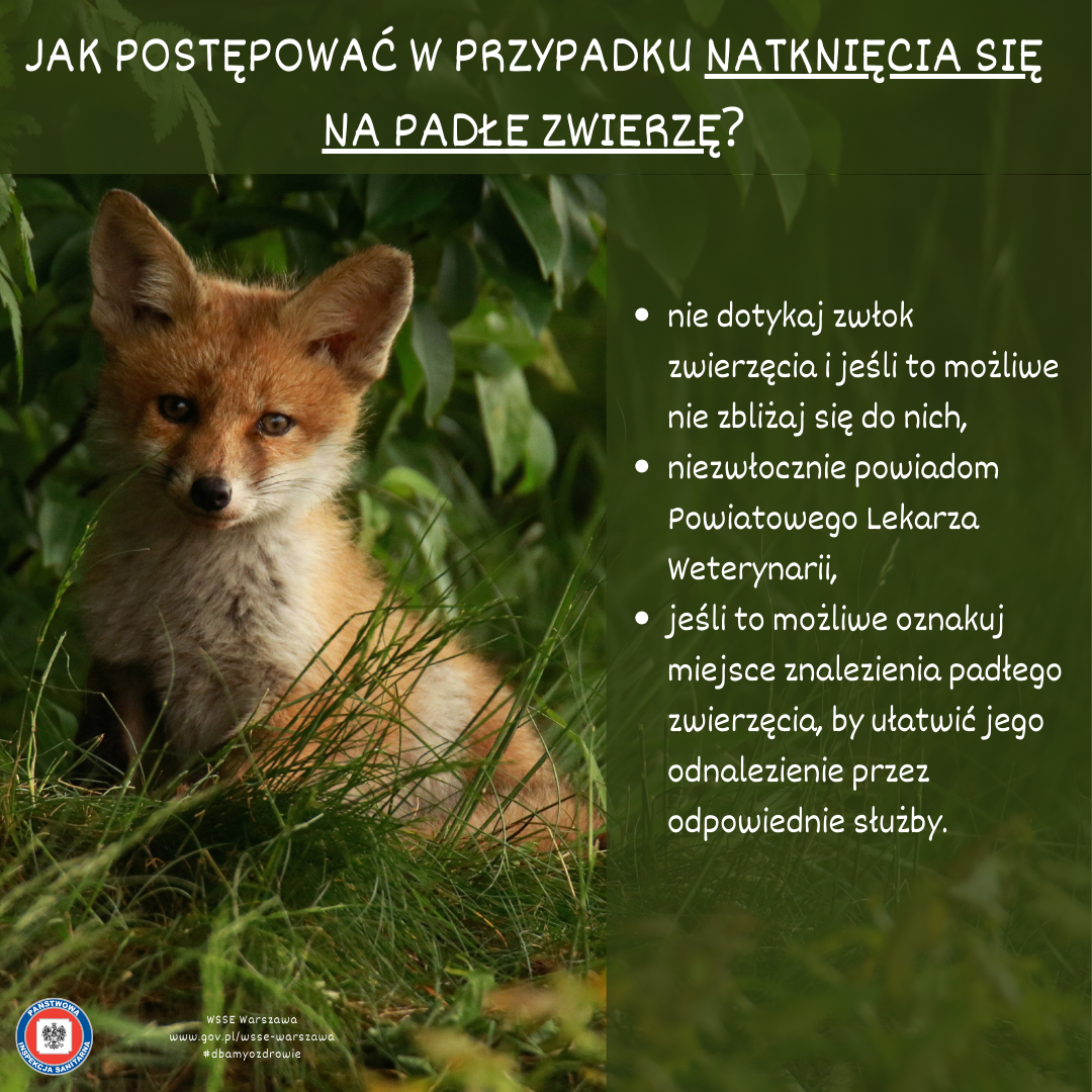 - nie dotykaj zwłok zwierzęcia i jeśli to możliwe nie zbliżaj się do nich,
