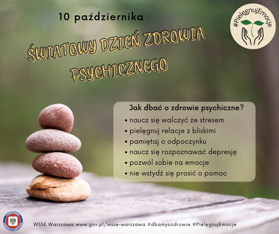 Według Światowej Organizacji Zdrowia (WHO) zdrowie psychiczne to dobrostan fizyczny, psychiczny i społeczny człowieka, a także zdolność do rozwoju i samorealizacji. Zdrowie psychiczne nie oznacza zatem jedynie braku chorób. To także poczucie własnej wartości, odpowiedzialność za swoje życie (decyzje, błędy, sukcesy) oraz zaangażowanie w życie społeczne, w pracę, związek.