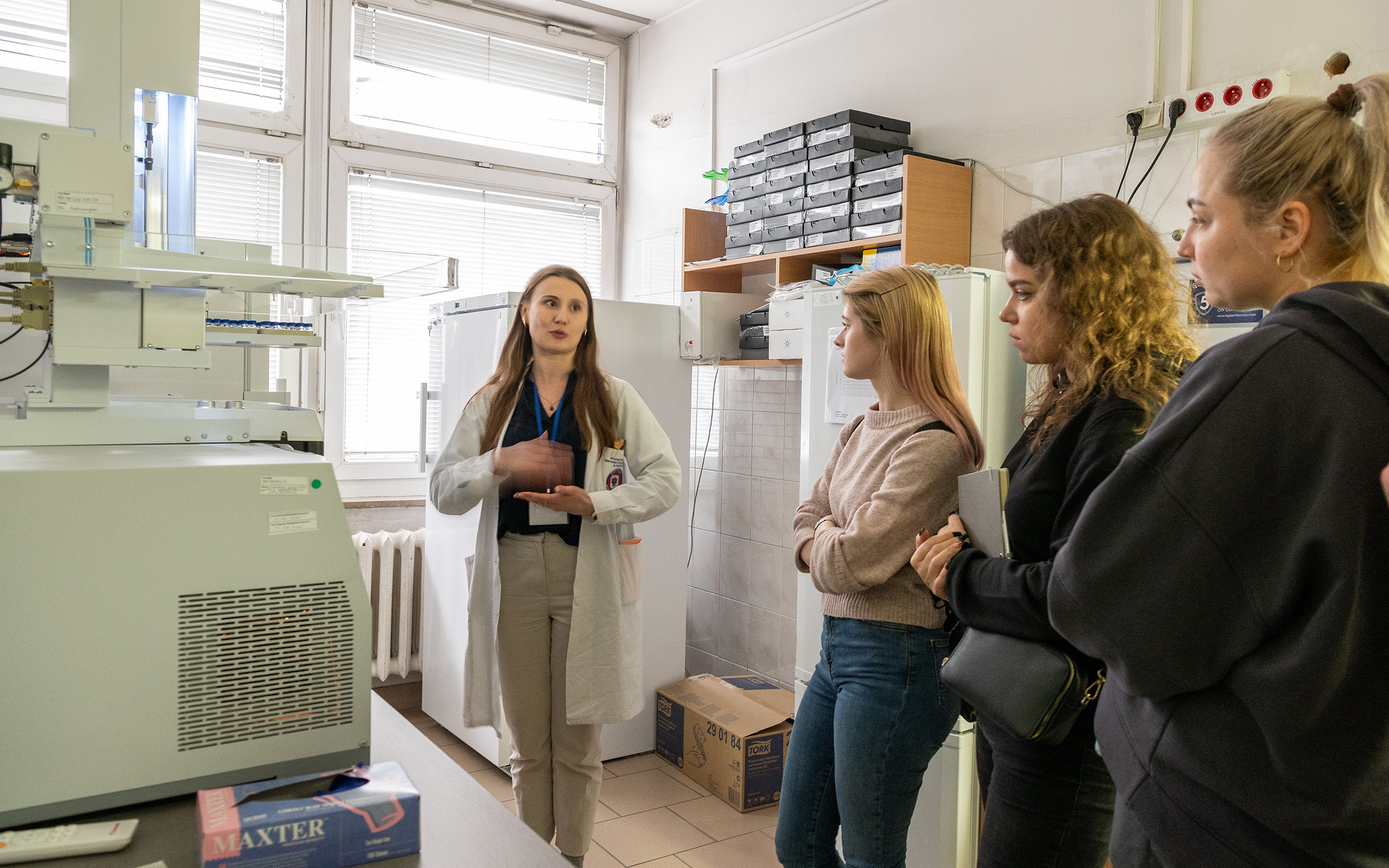 Przybyłych studentów, którym towarzyszył pan Artur Białoszewski, Mazowiecki Wojewódzki Konsultant w dziedzinie zdrowia środowiskowego, przywitała pani Magdalena Kaczmarek, Dyrektor WSSE w Warszawie. Pani Dyrektor podczas swoich dwóch wystąpień opowiedziała o najważniejszych obszarach działalności Państwowej Inspekcji Sanitarnej, przybliżyła również koncepcję zarządzania projektowego w działalności PIS, która będzie realizowana w województwie mazowieckim w 2023 r. Następnie pracownicy poszczególnych oddziałów merytorycznych pionu Nadzoru opowiedzieli gościom o charakterze i wyzwaniach swojej codziennej pracy, przedstawiając krótkie prezentacje o każdym oddziale. Druga część spotkania była poświęcona prezentacji działalności laboratoryjnej wojewódzkiej stacji sanitarno-epidemiologicznej. Zastępca Mazowieckiego Państwowego Wojewódzkiego Inspektora Sanitarnego, pani Anna Ambroziak w towarzystwie kierowników oddziałów i poszczególnych pracowni laboratoryjnych oprowadziła studentów po pomieszczeniach Laboratorium.