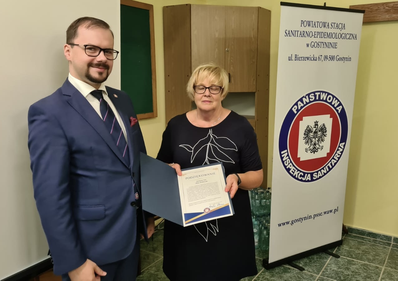 W dniu 28 lipca 2021 r. pracę jako Państwowy Powiatowy Inspektor Sanitarny w Gostyninie a zarazem Dyrektor PSSE w Gostyninie rozpoczęła Pani Małgorzata Eichel. Pani Inspektor przyjęła nominację z rąk Mazowieckiego Państwowego Wojewódzkiego Inspektora Sanitarnego. Przy okazji symbolicznego przekazania kierownictwa placówką z rąk odchodzącej Pani Inspektor Marii Wróblewskiej gratulacje i życzenia przekazali Pani Inspektor również: Pan Arkadiusz Boruszewski - Starosta Gostyniński, Pan Paweł Kalinowski - Burmistrz Gostynina oraz Pan dr Tomasz Białas - Zastępca Dyrektora WSSE.