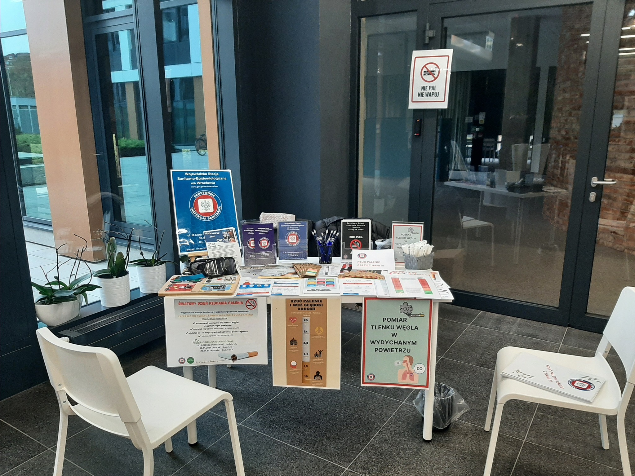 Od 18 do 20 listopada pracownicy WWSSE we Wrocławiu przeprowadzili akcję edukacyjno-informacyjną jak skutecznie rzucić palenie. Akcja skierowana była przede wszystkim dla pracowników kompleksu biurowego Business Garden Wrocław (bud. G, F, H).