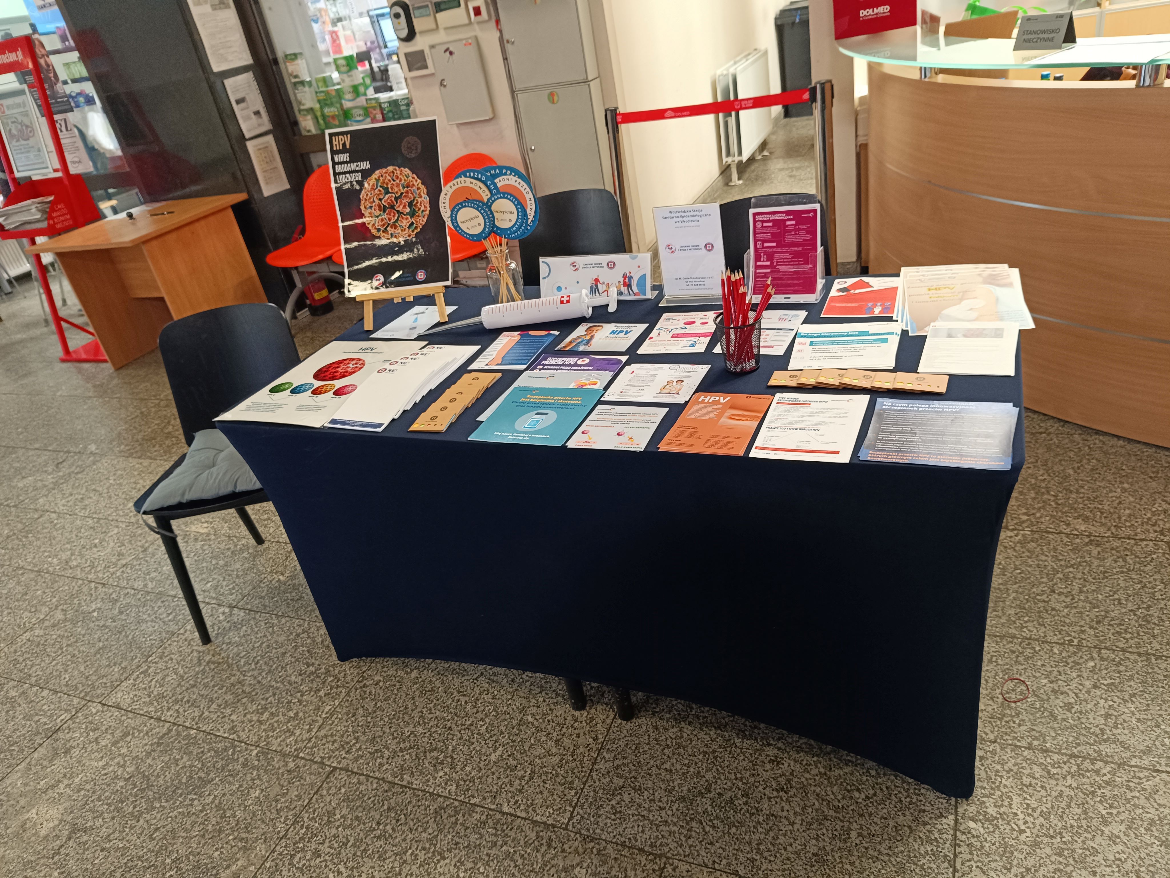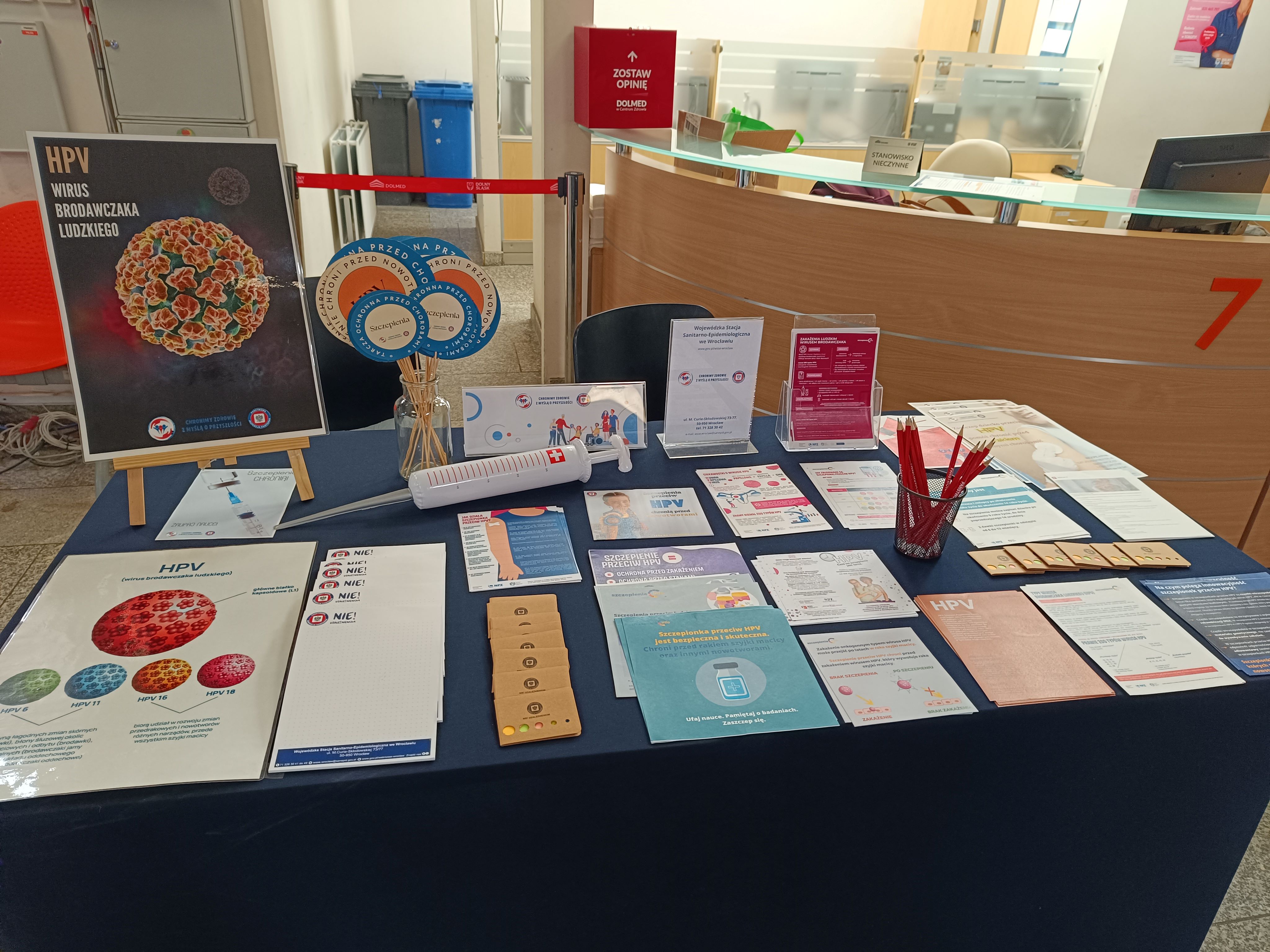 W ramach realizacji Powszechnego Programu Szczepień Przeciw Wirusowi Brodawczaka Ludzkiego (HPV) aktywnie włączamy się w jego realizację, ze szczególnym naciskiem na działania edukacyjne i promocyjne, dlatego przekazywaliśmy informacje pacjentom Centrum Medycznego DOLMED S.A. we Wrocławiu dotyczące szczepień przeciw HPV dla dzieci i młodzieży.