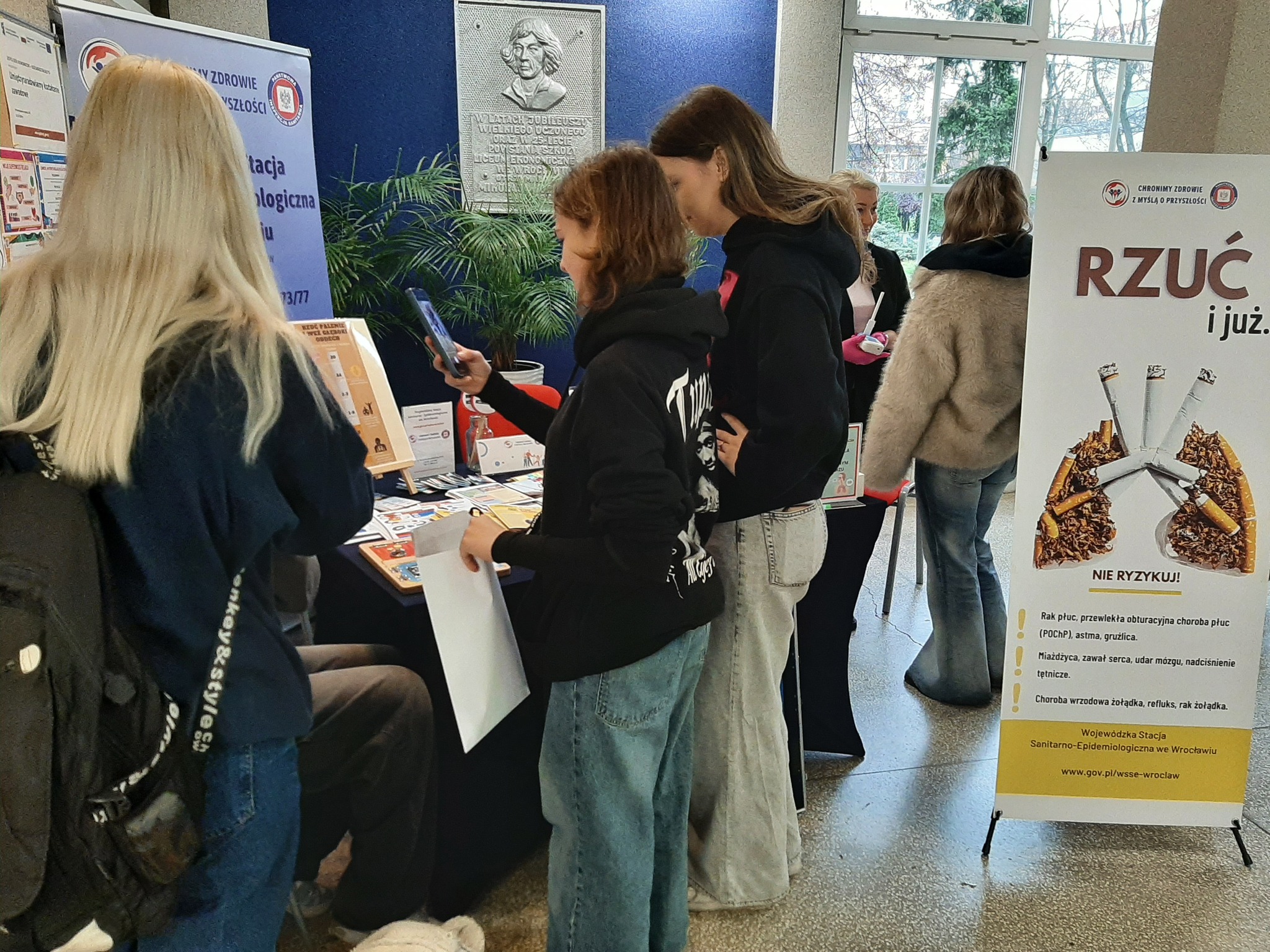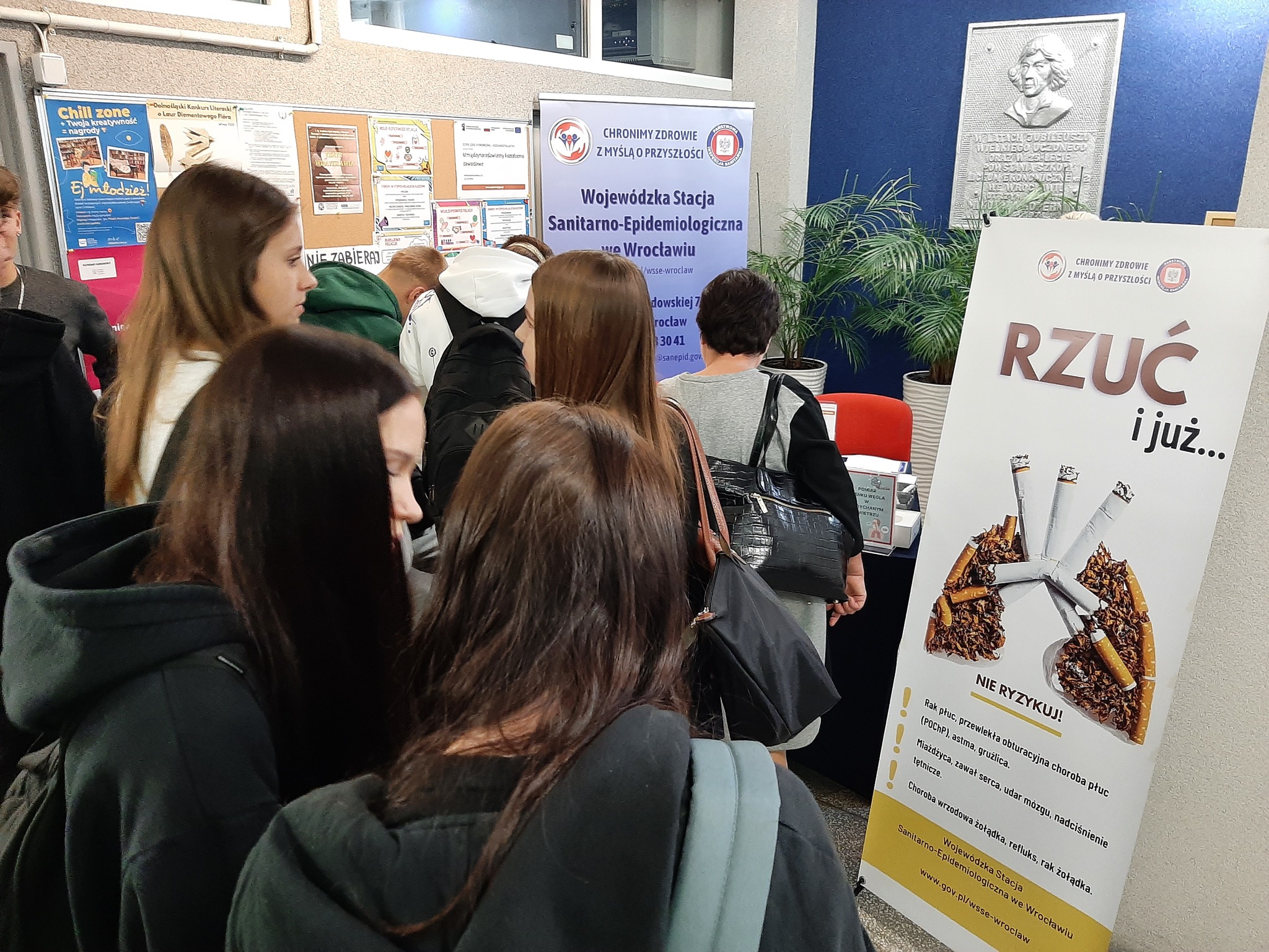 W dniu 17.11.2025r. pracownicy WSSE we Wrocławiu spotkali się z uczniami i nauczycielami Zespół Szkół Ekonomiczno - Ogólnokształcących we Wrocławiu, by porozmawiać o tym, dlaczego warto żyć bez dymka w jakiejkolwiek postaci.