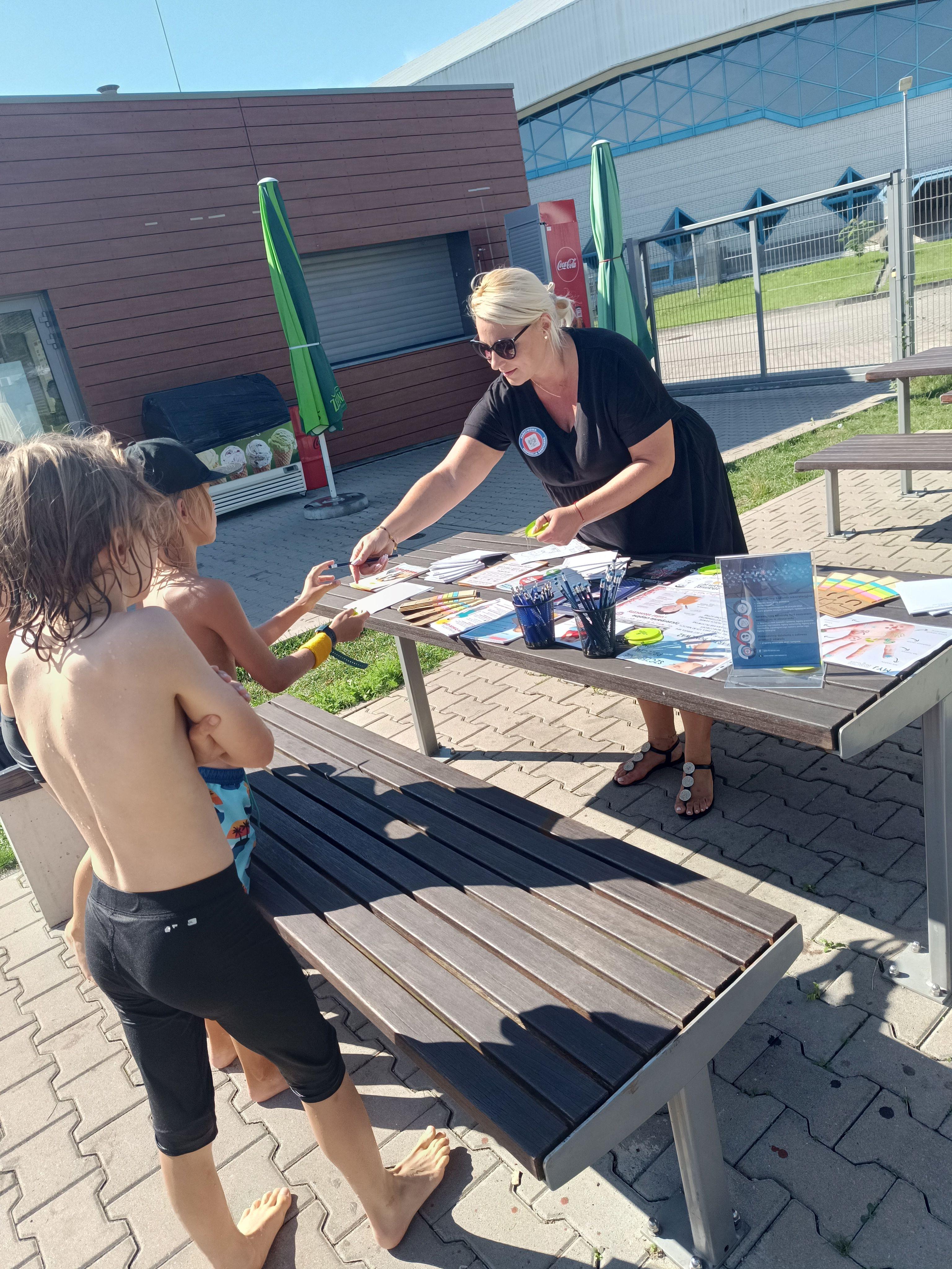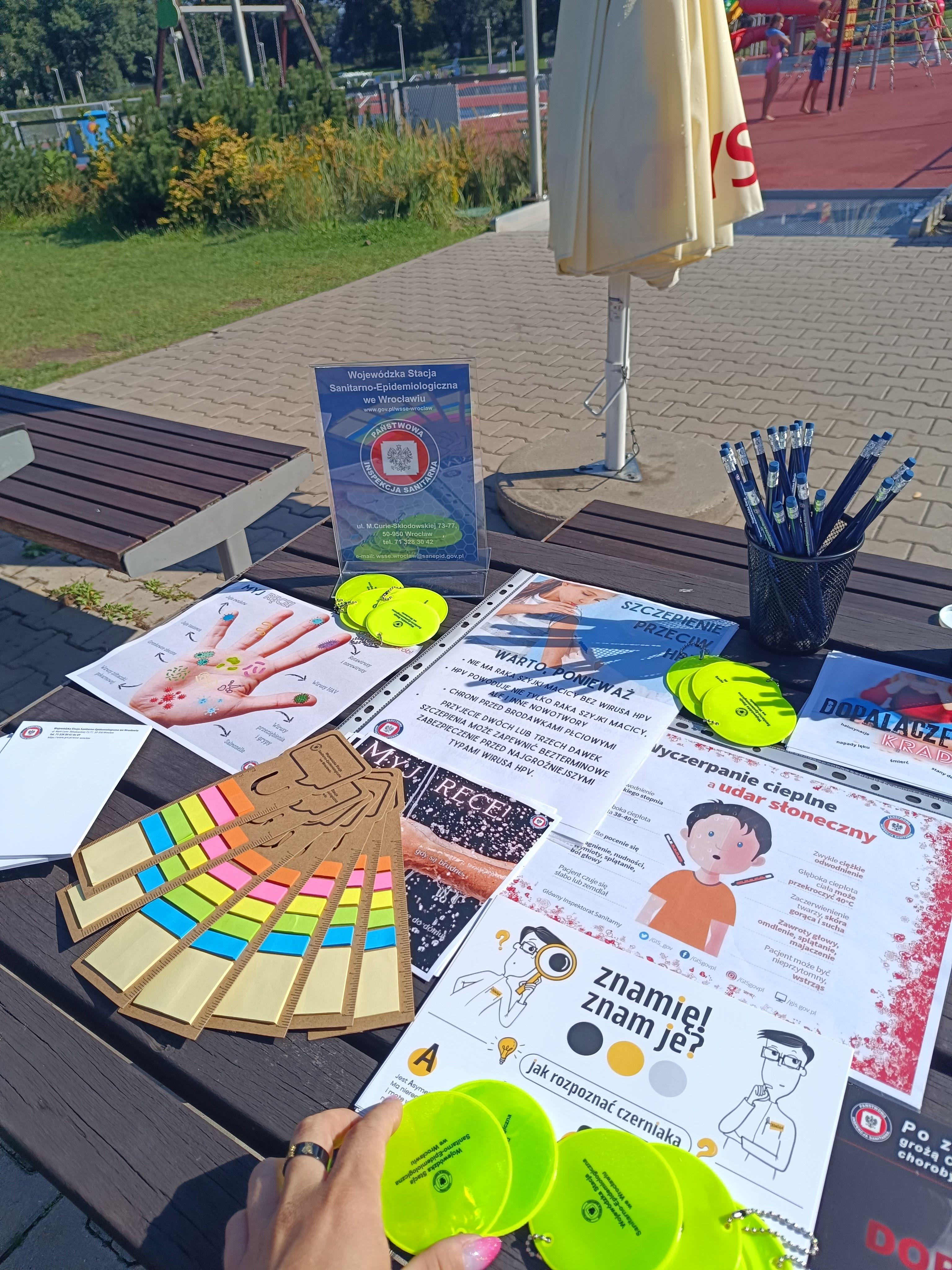 W dniu 09.08.2024 r., na terenie pływalni letniej Orbita przy ul. Wejherowskiej we Wrocławiu w ramach Akcji Lato 2024 pracownicy WSSE we Wrocławiu zorganizowali punkt informacyjno-edukacyjny dla klientów korzystających z kąpieliska, w tym dzieci i młodzieży wraz z opiekunami.