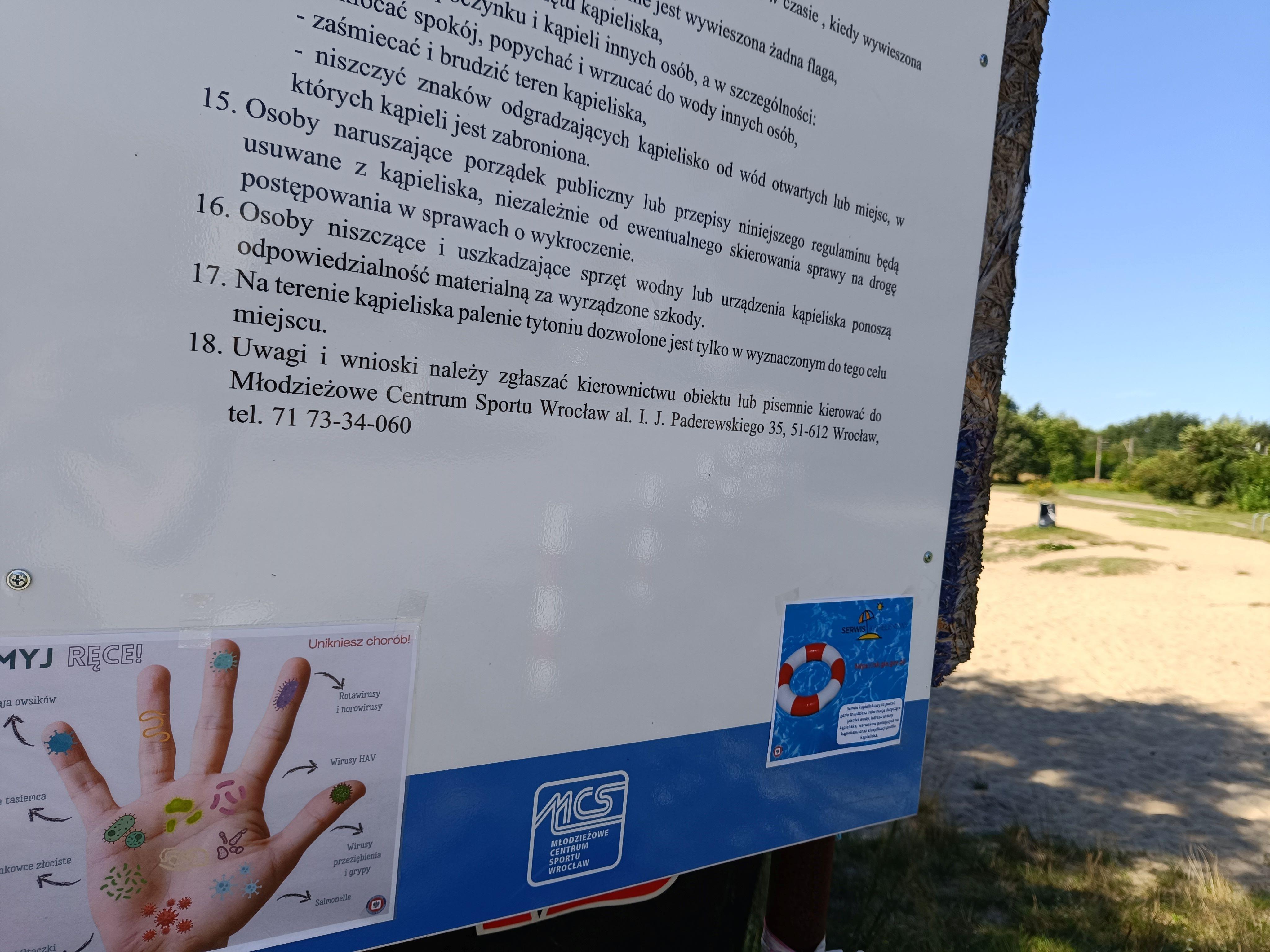 W dniu 14.08.2024 r., na terenie terenów zielonych kąpieliska „Królewiecka” we Wrocławiu w ramach Akcji Lato 2024 przeprowadzono dystrybucję materiałów edukacyjno-informacyjnych.