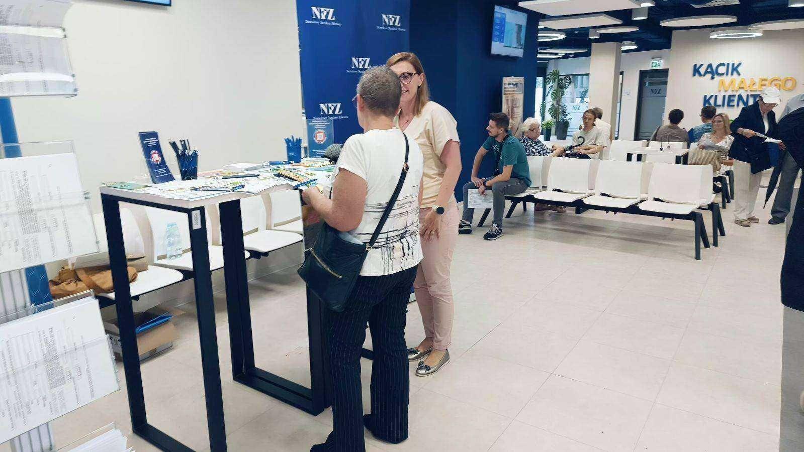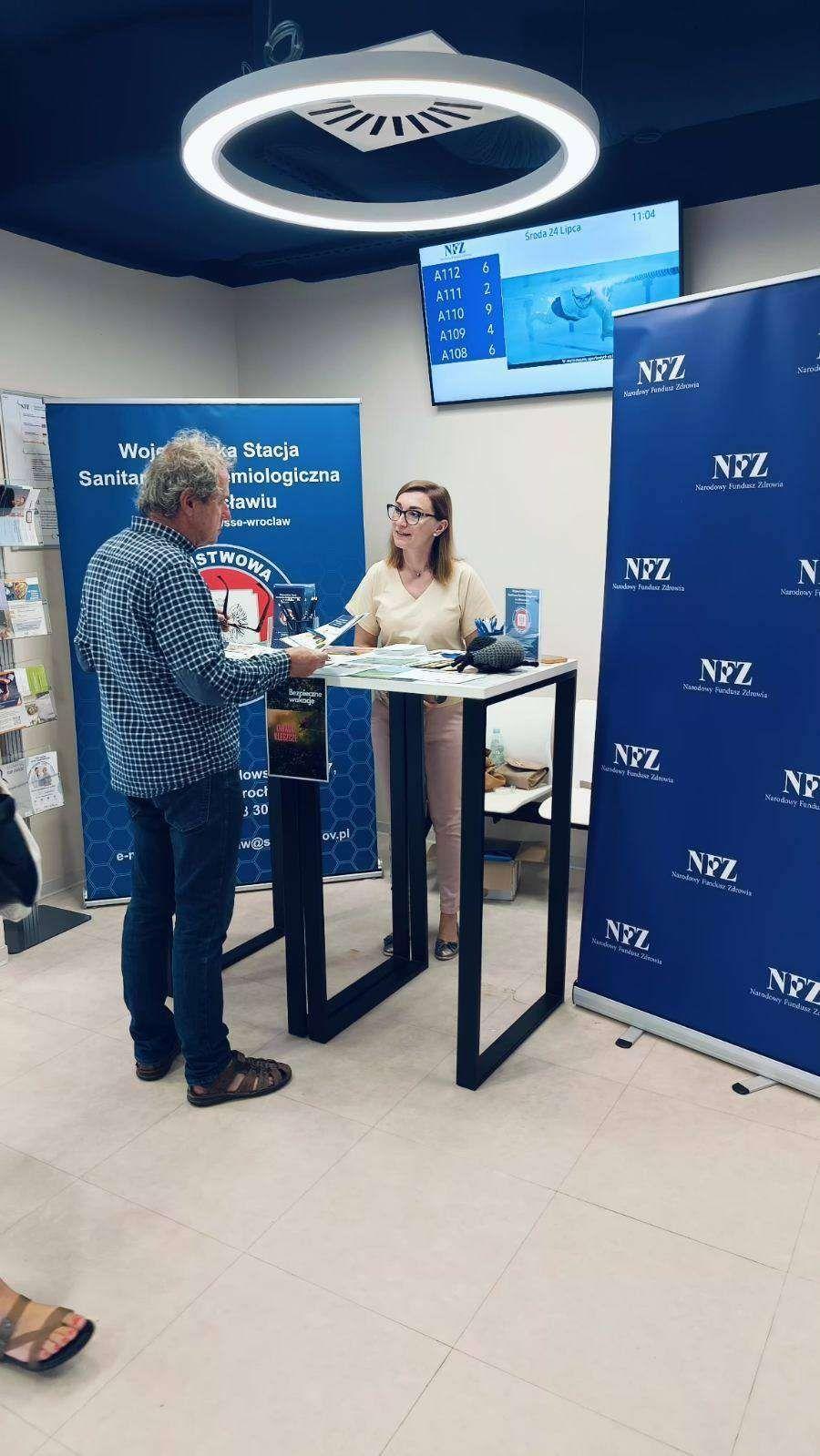 W dniu 24.07.2024 pracownicy Promocji Zdrowia WSSE we Wrocławiu w punkcie obsługi klienta Dolnośląskiego Oddziału NFZ przekazywali sprawdzone patenty na bezpieczne wakacje,