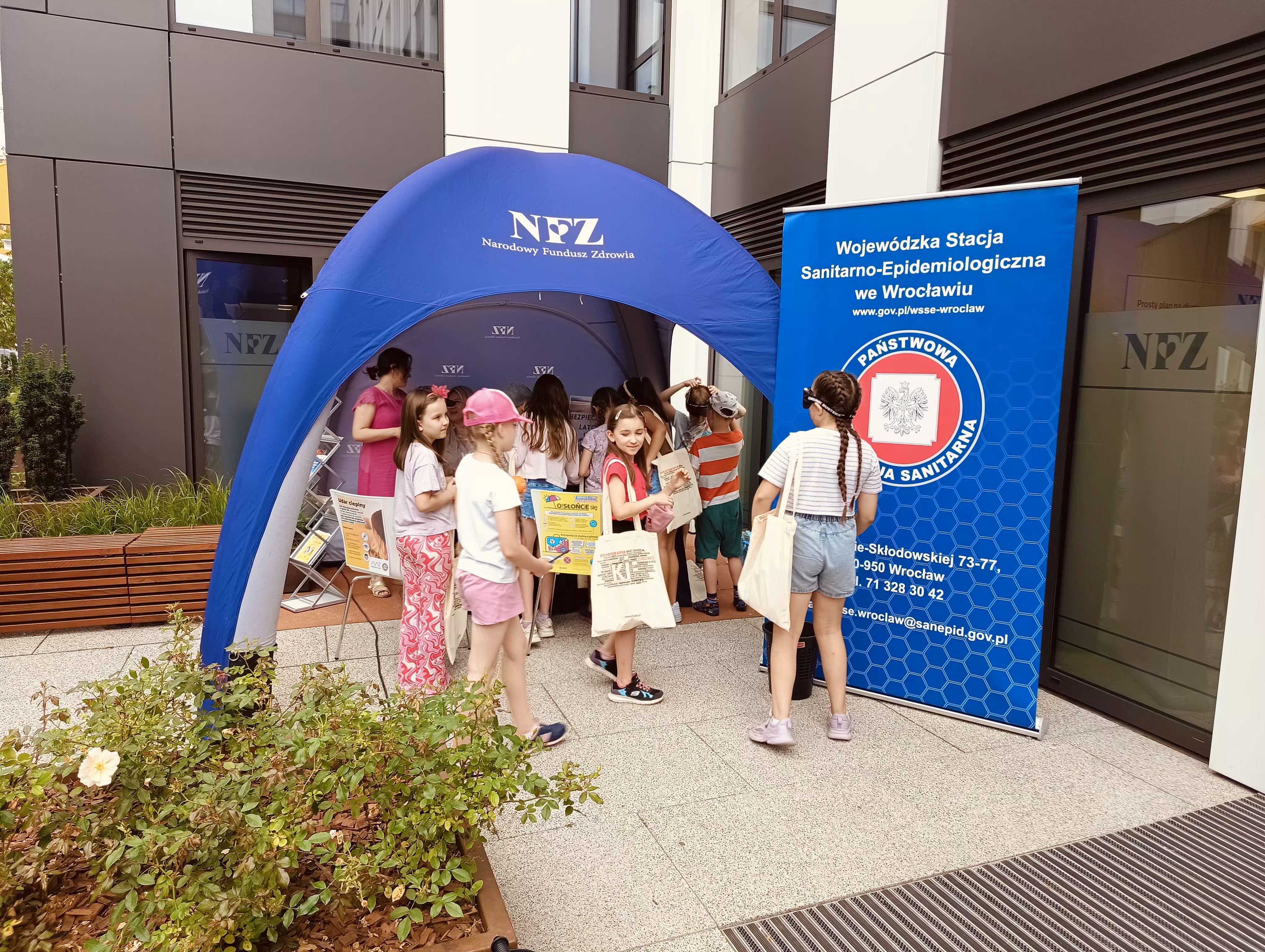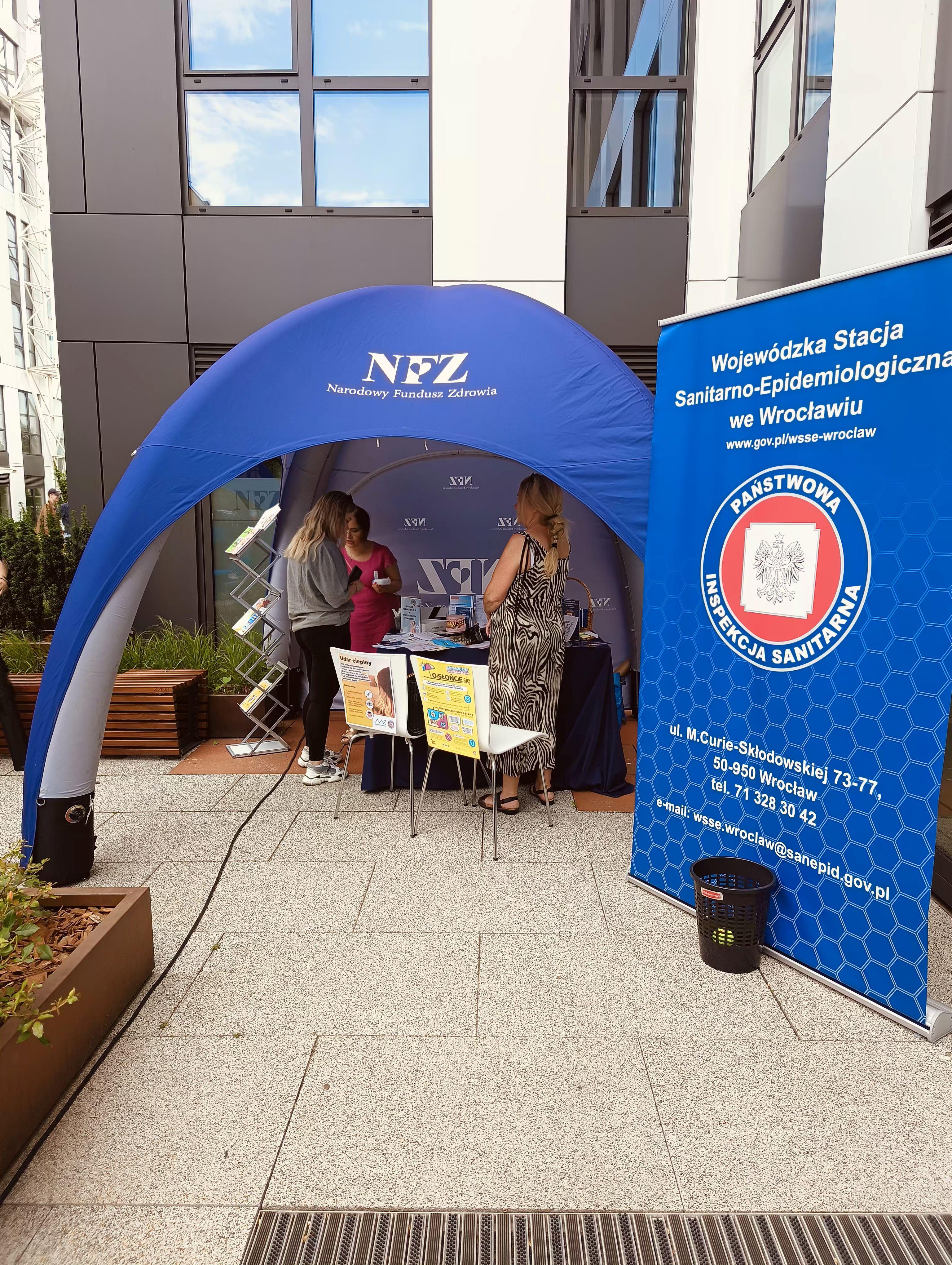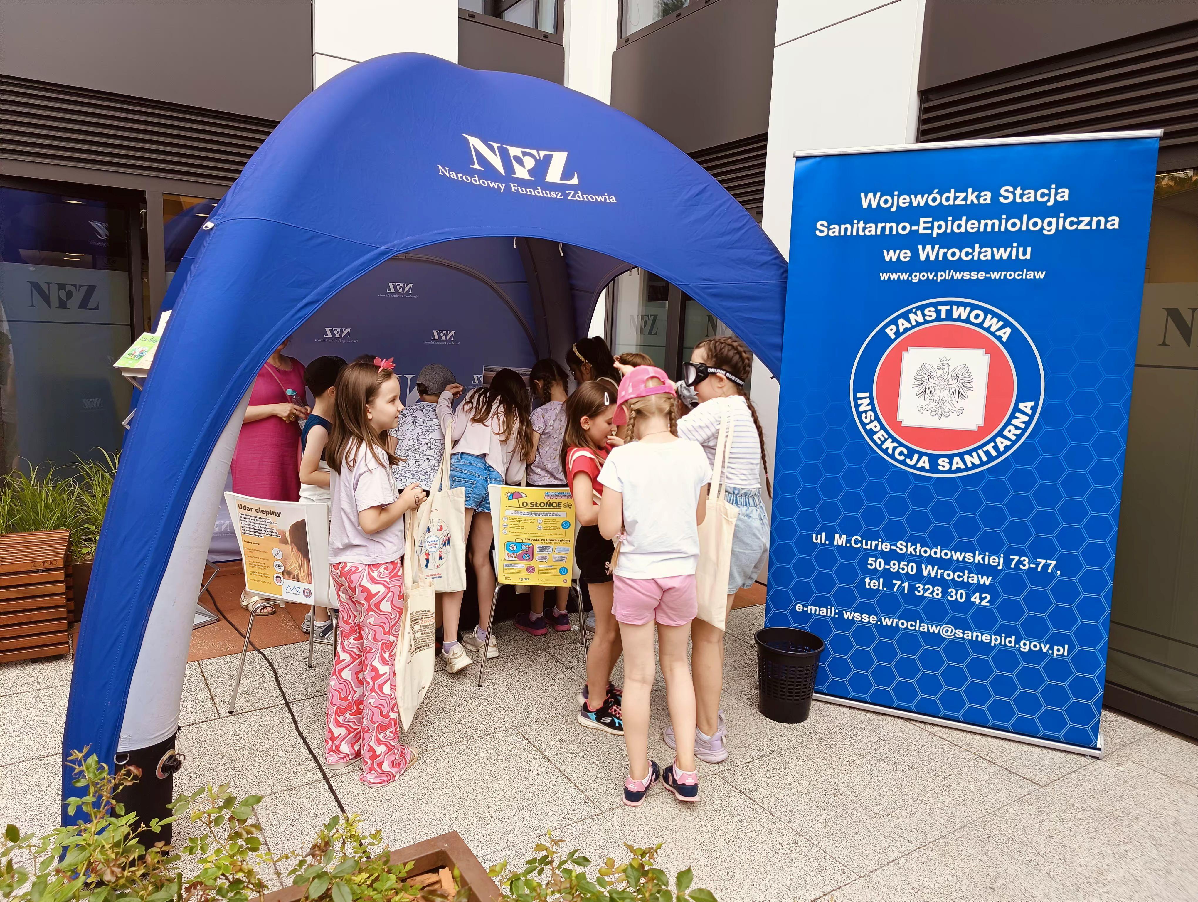 W ramach organizowanego przez NFZ wydarzenia Bezpieczne przygotowanie do wakacji pracownicy WSSE we Wrocławiu dnia 19 września od godz. 11.00 do 14.00 na patio przy sali obsługi klientów przy ul. Traugutta 55 edukowali klientów NFZ jak bezpiecznie spędzić wakacje oraz dodatkowo poruszali tematykę :