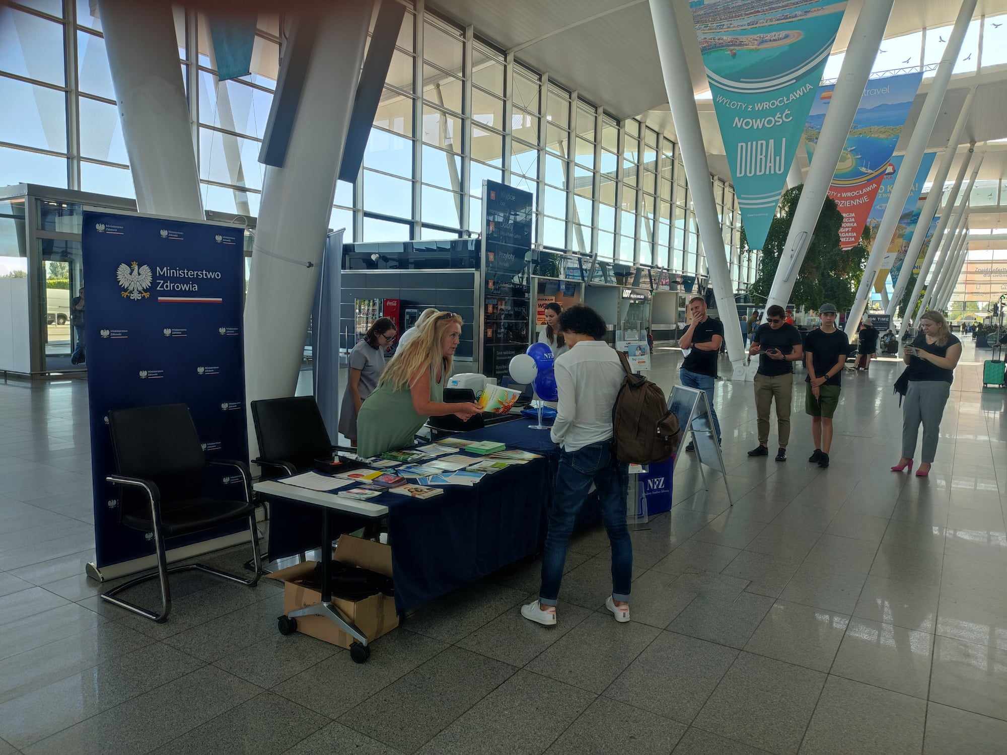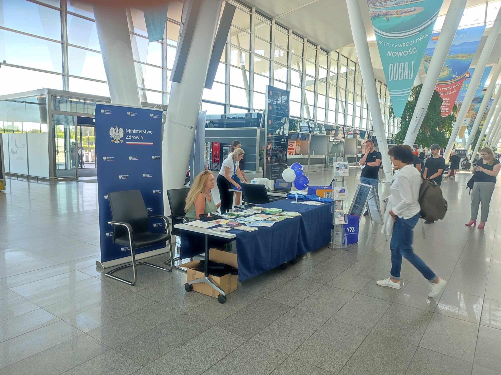 W dniu 18.07.2023r. pracownicy Wojewódzkiej Stacji Sanitarno-Epidemiologicznej we Wrocławiu informowali podróżnych korzystających z usług Portu Lotniczego we Wrocławiu między innymi o badaniach, które można wykonać w WSSE wracając z krajów tropikalnych.