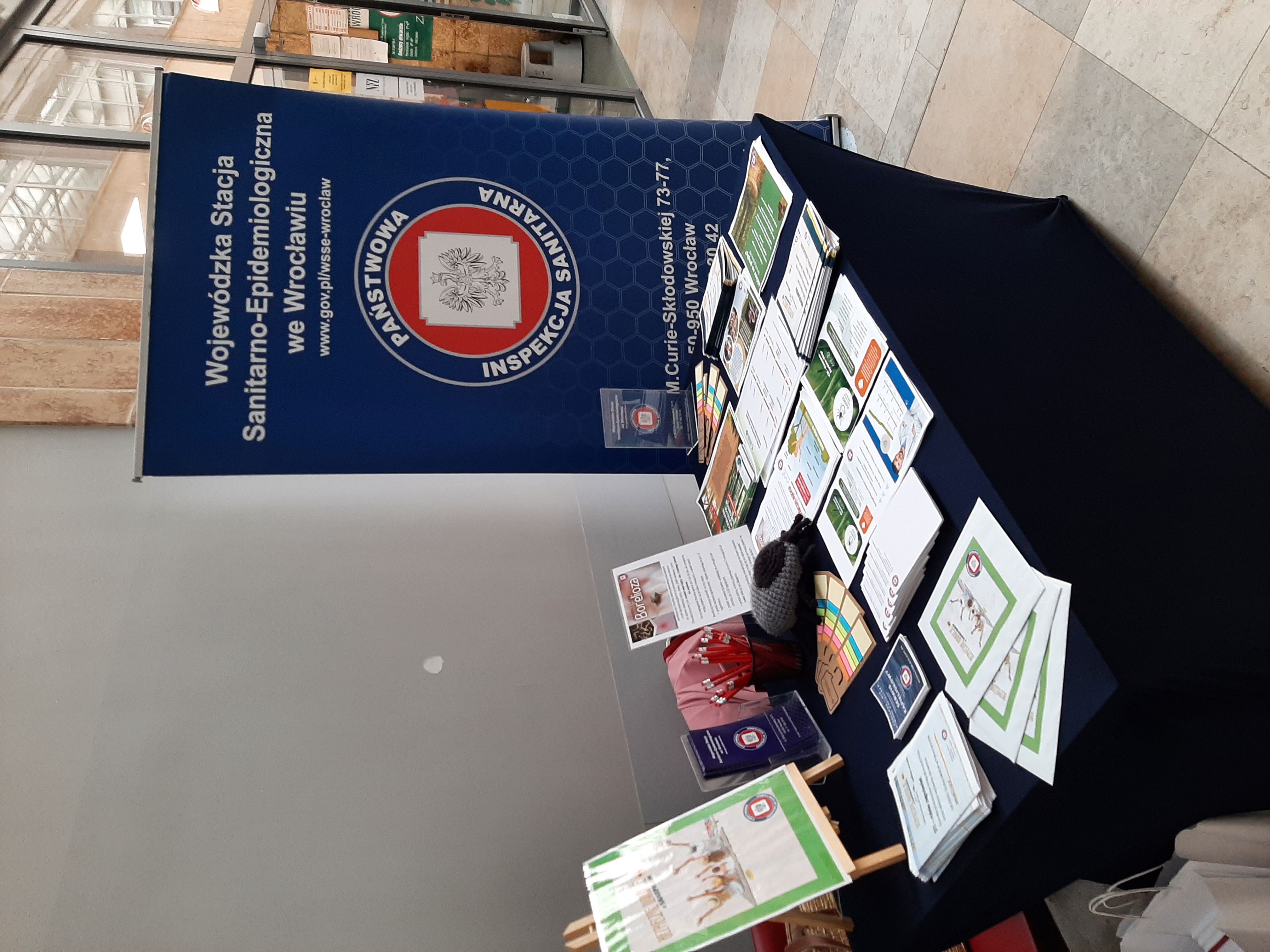 Dnia 07.08.2025 w Centrum Medycznym DOBRZYŃSKA we Wrocławiu pracownicy Wojewódzkiej Stacji Sanitarno-Epidemiologicznej we Wrocławiu z Działu Promocji Zdrowia przeprowadzili akcję informacyjno-edukacyjną w ramach kampanii "Bezpieczne wakacje z sanepidem".