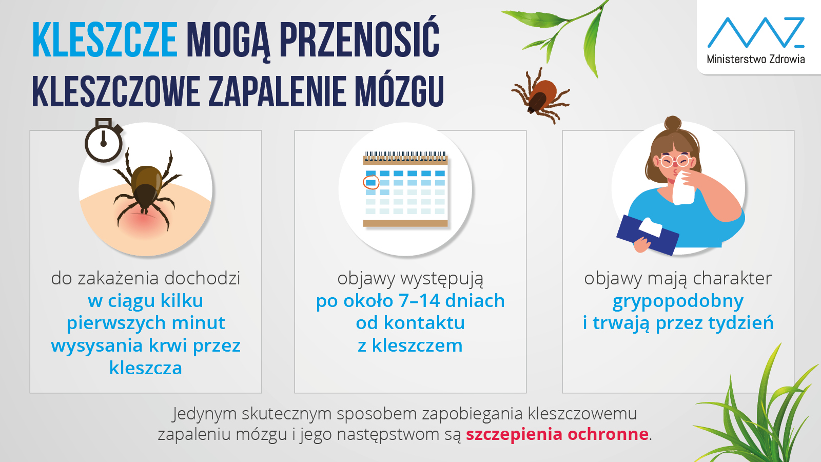 30 marca obchodziliśmy Ogólnopolski Dzień Świadomości o Kleszczowym Zapaleniu Mózgu. Jest to jedna z wielu chorób przenoszonych przez kleszcze oraz jedyna, na którą możemy się zaszczepić, co wiąże się z jej wirusowym charakterem.