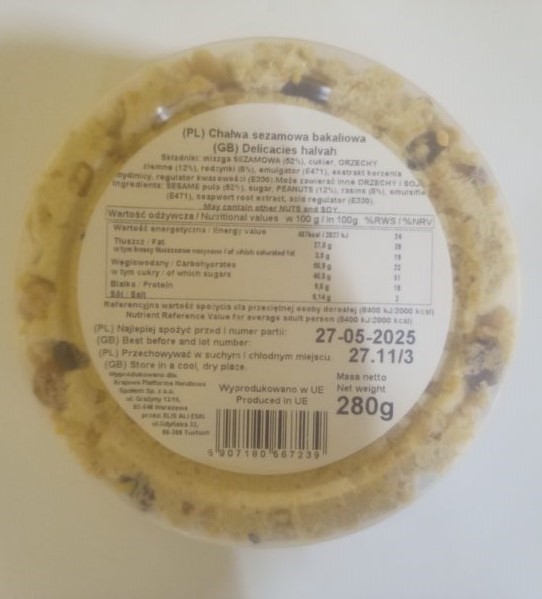 Ostrzeżenie publiczne dotyczące żywności: Wykrycie bakterii Salmonella w chałwie sezamowej