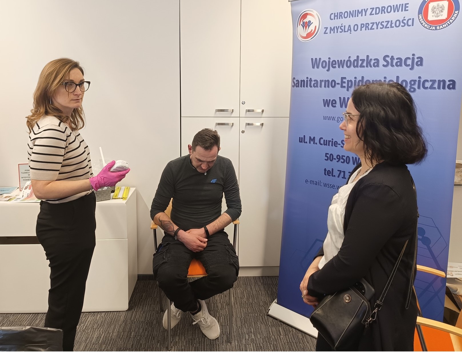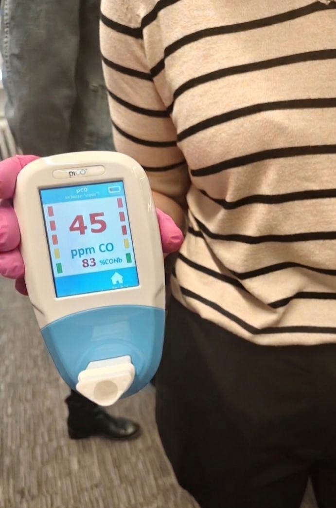 Po części wykładowej osoby palące mogły skorzystać z badania smokerlyzerem, które w prosty sposób pokazuje poziom tlenku węgla w wydychanym powietrzu — a tym samym realny wpływ papierosów na płuca i układ krążenia .