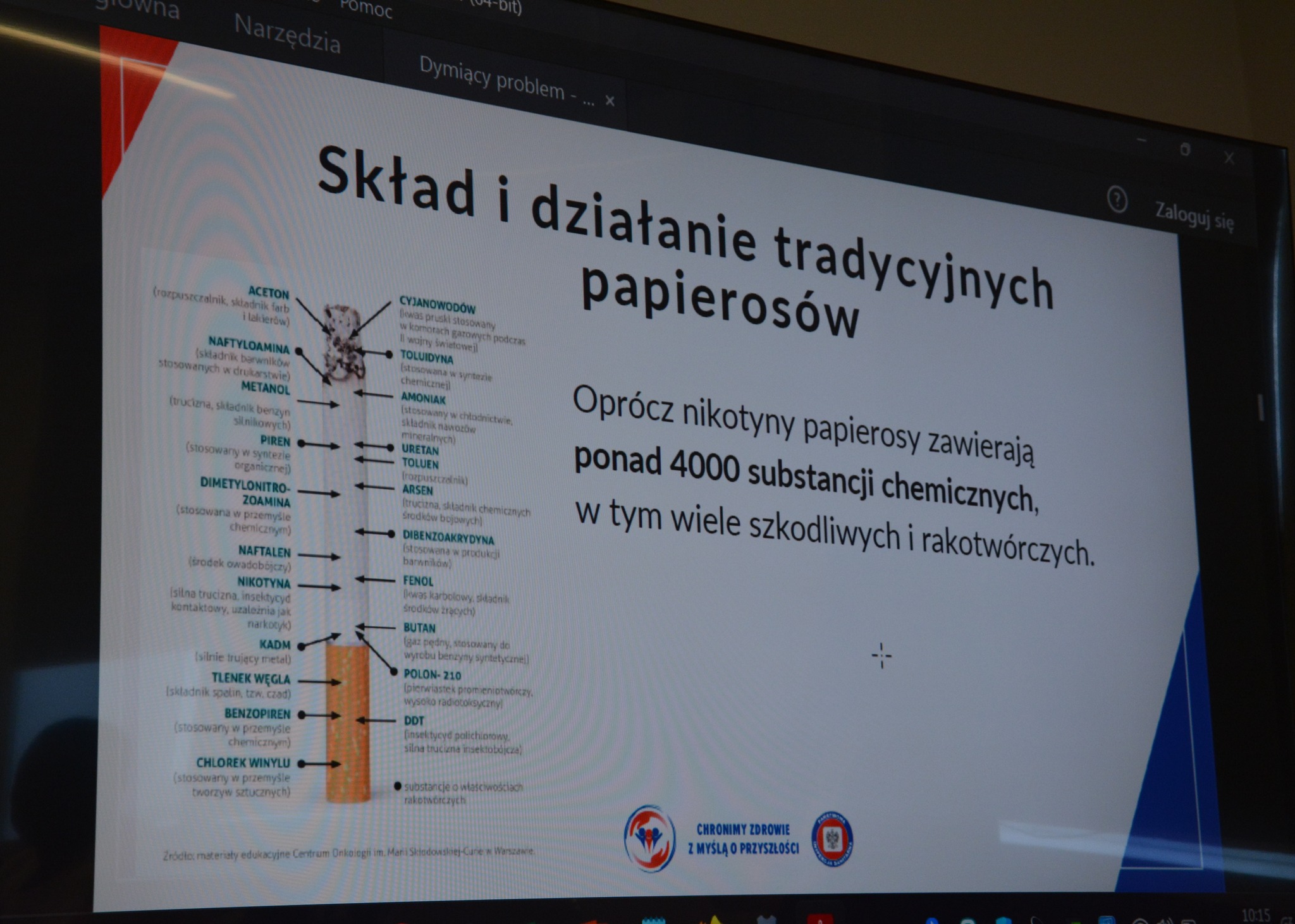 Podczas prelekcji omówiliśmy wpływ palenia tytoniu na organizm oraz korzyści, jakie przynosi ograniczenie lub całkowite rzucenie nałogu.