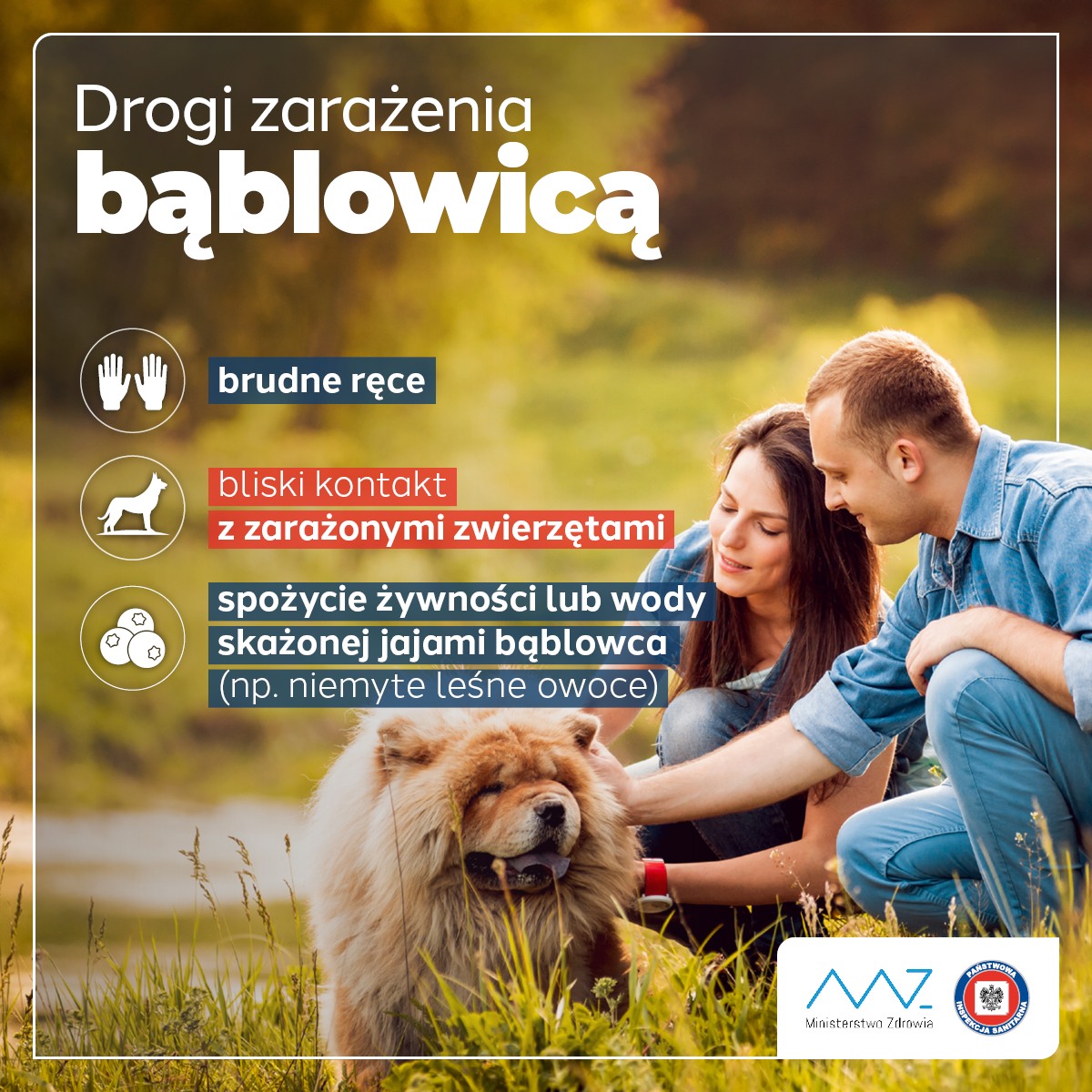 W warunkach polskich także pies, jeśli nie jest na bieżąco poddawany profilaktyce przeciwpasożytniczej, może być rezerwuarem tasiemców bąblowcowych. Jaja tasiemców dostają się do organizmu człowieka zarówno przez bliski kontakt z tymi zwierzętami (np. głaskanie) i przeniesienie jaj do ust za pośrednictwem brudnych rąk, jak i spożycie skażonej jajami tasiemca żywności (np. nie myte owoce runa leśnego) lub skażonej wody.