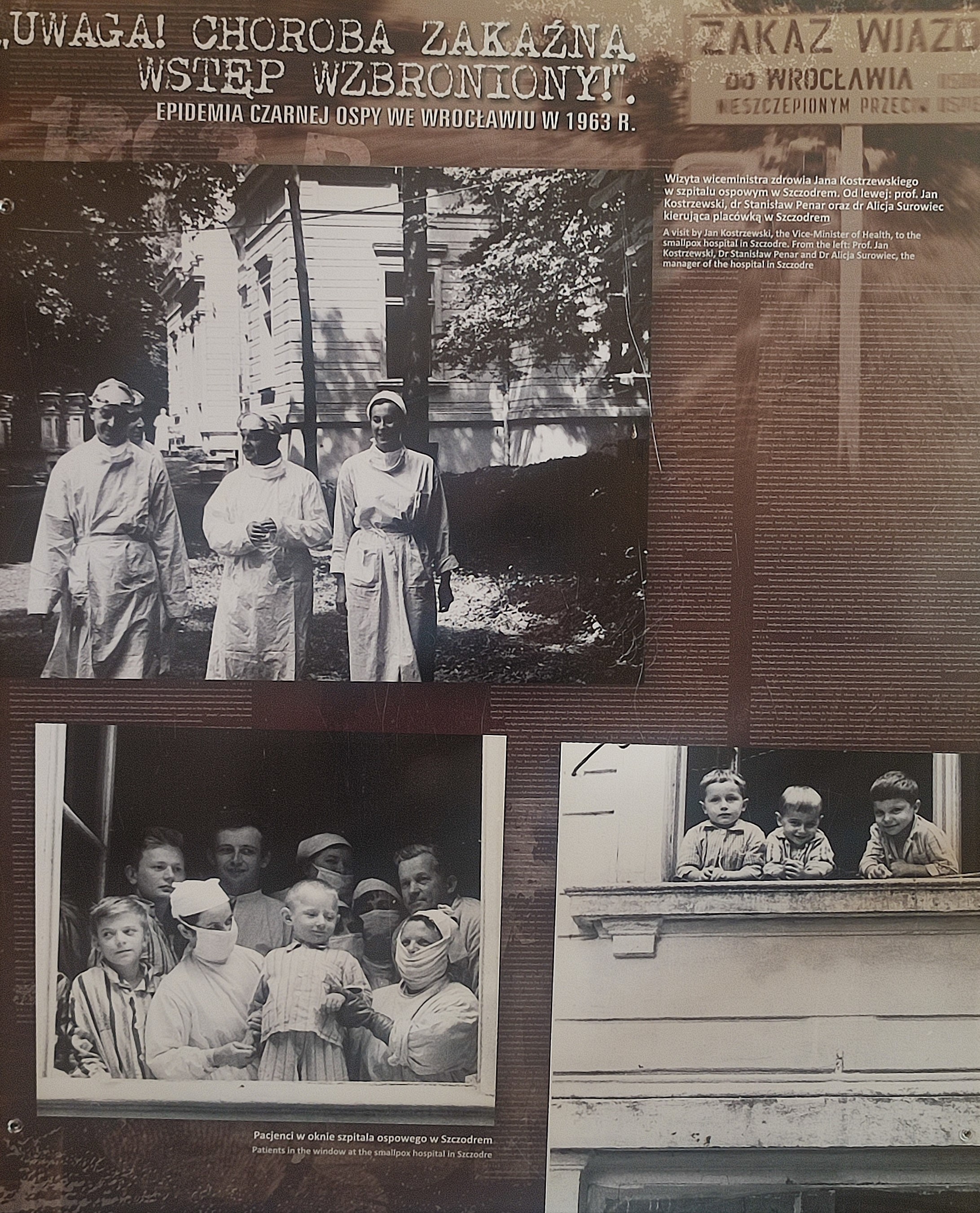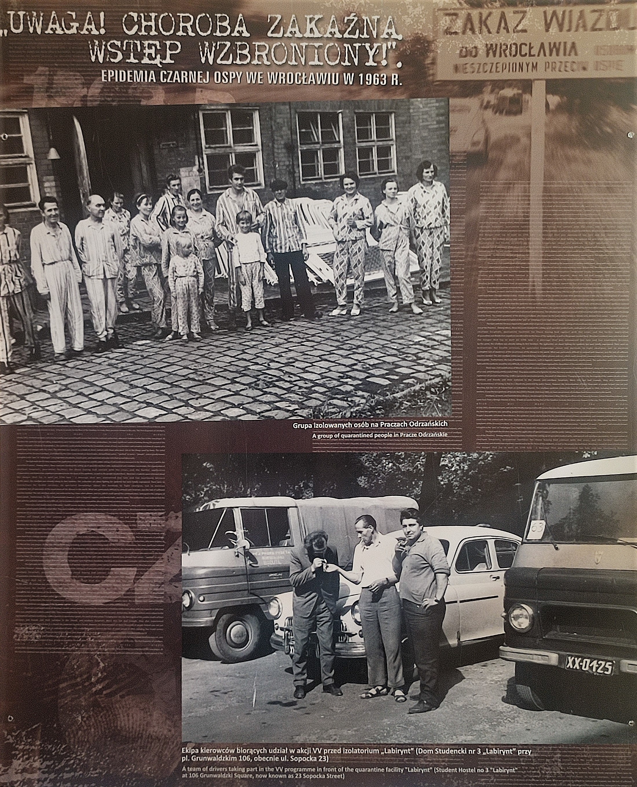 - Izolatorium na Praczach Odrzańskich (obecnie Wrocławskie Centrum Badań Eit+ ul. Stabłowicka) – w 1963 roku budynek należał do ówczesnego Technikum Mechanizacji Rolnictwa, 18 lipca stał się pierwszym z kilku stworzonych izolatoriów. Co ciekawe wcześniejsza historia tego kompleksu wiąże się również z zwalczaniem choroby zakaźnej. Od 1920 roku istniał tutaj Szpital Przeciwgruźliczy, który wykorzystywał najnowocześniejsze metody walki z tą groźną chorobą.