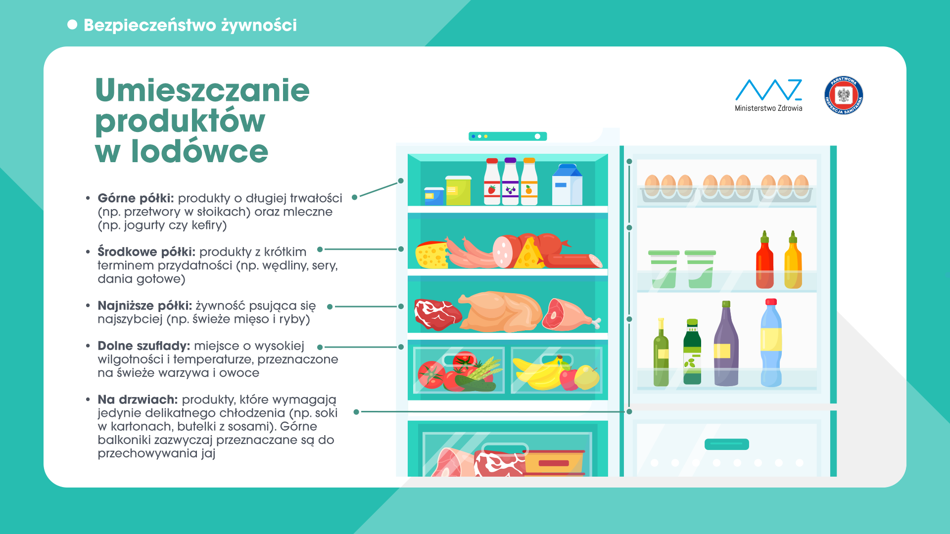 Utrzymanie żywności w odpowiedniej temperaturze jest najlepszym sposobem zapobiegania wzrostowi drobnoustrojów i spowolnienia ich rozwoju, dlatego też gotowe dania, po uprzednim wystudzeniu, należy przechowywać w chłodzonym miejscu, najlepiej w lodówce. Pamiętaj, że ujemne temperatury skutecznie ograniczają rozwój mikroorganizmów, jednak nie hamują zachodzących zmian chemicznych czy fizycznych. Jeśli mrozisz lub ofiarowujesz żywność, zawsze zaznacz na opakowaniu datę przygotowania i/lub zamrożenia.