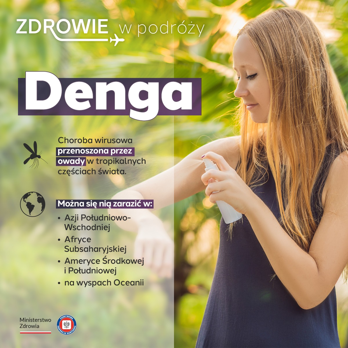 Należy pamiętać, aby podróżując w rejony występowania dengi zasięgnąć dokładnych informacji o sposobach skutecznego zabezpieczenia się przed ukłuciami komarów.