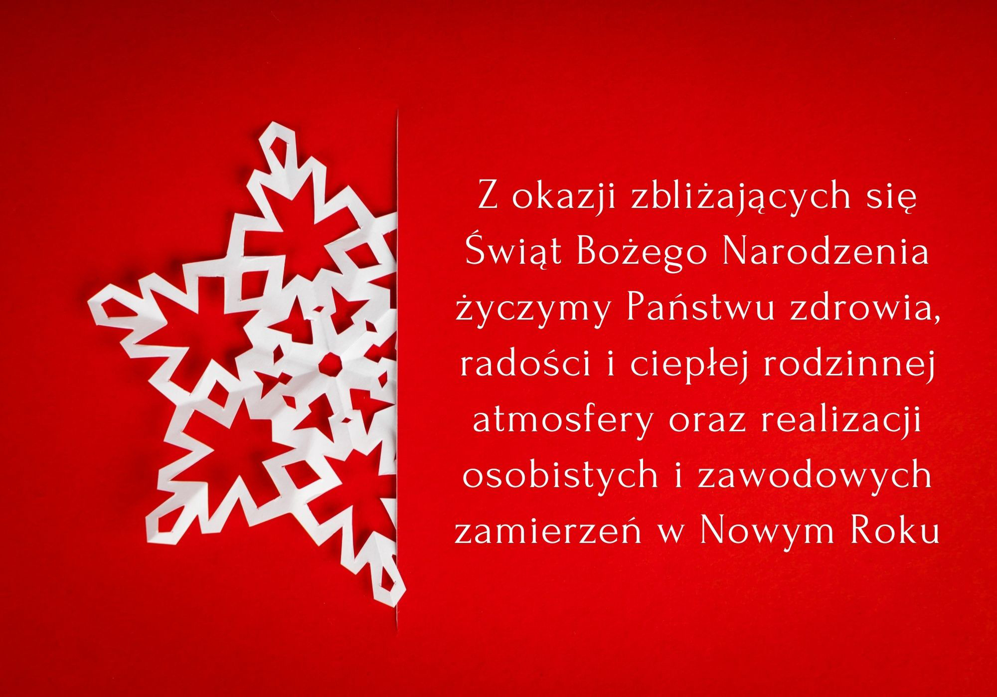 Z okazji zbliżających się Świąt Bożego Narodzenia życzymy Państwu zdrowia, radości i ciepłej rodzinnej atmosfery oraz realizacji osobistych i zawodowych zamierzeń w Nowym Roku