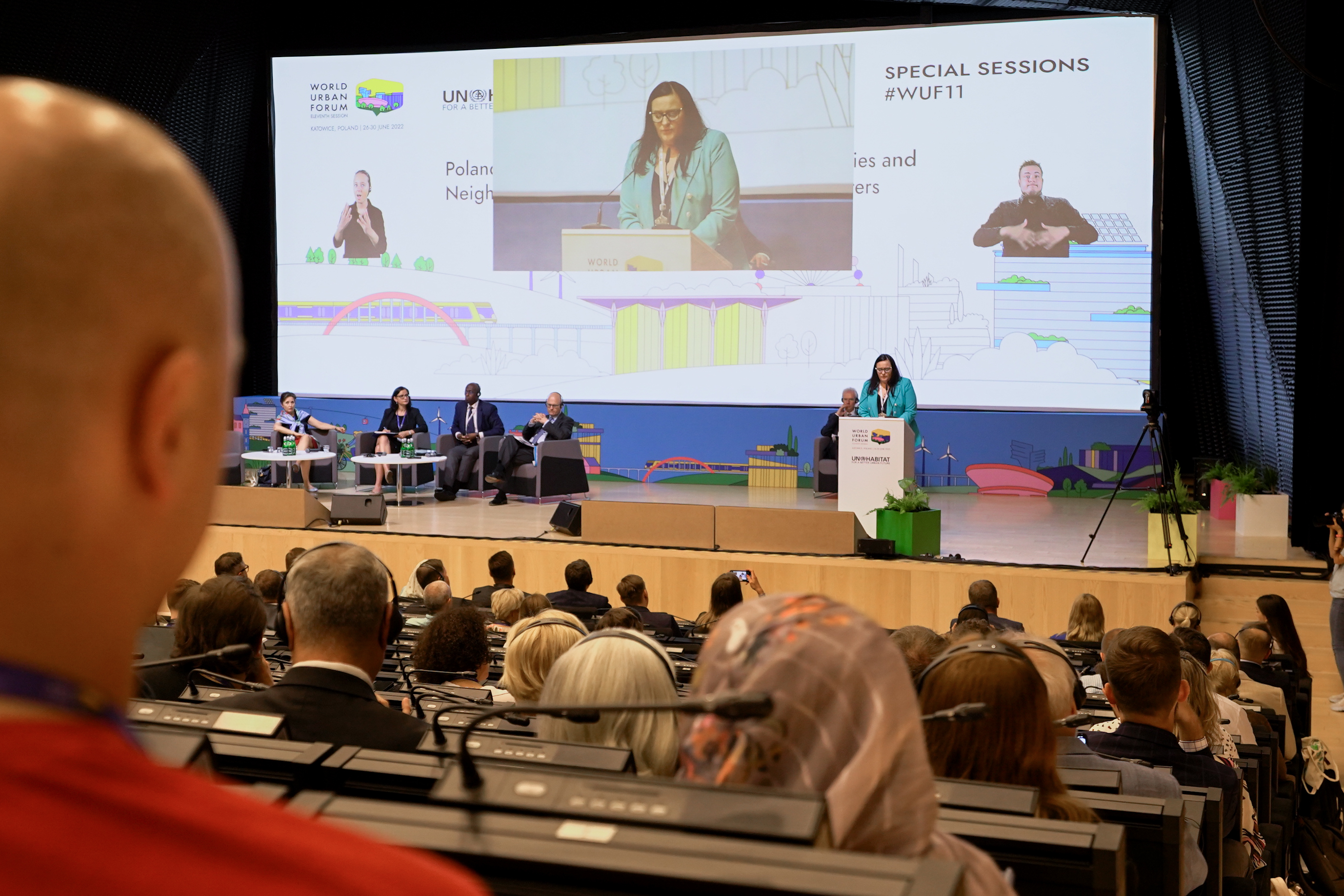 Odbudowa miast jest tematem polskiej sesji specjalnej podczas Światowego Forum Miejskiego WUF11 w Katowicach. Polska Sesja Specjalna o Odbudowie Społeczności i Sąsiedztwa po wojnie i katastrofach naturalnych została zorganizowana w kontekście wojny w Ukrainie. Aby proces niesienia pomocy i przywracania warunków do normalnego funkcjonowania po dokonanych zniszczeniach był efektywny, niezbędny jest dialog i współpraca z lokalnymi społecznościami i władzami samorządowymi. W sesji uczestniczyły dyrektor wykonawcza UN-Habitat Maimunah Mohd Sharif i wiceminister Małgorzata Jarosińska-Jedynak oraz prezydent Katowic Marcin Krupa.