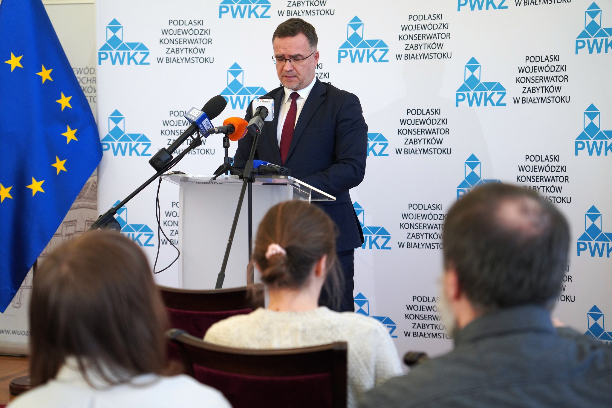 Dziś w Pałacu Hasbacha odbyła się konferencja prasowa, podczas której Adam Musiuk, Podlaski Wojewódzki Konserwator Zabytków, zaprezentował listę beneficjentów dotacji udzielonej przez Konserwatora Zabytków w 2025 roku!
